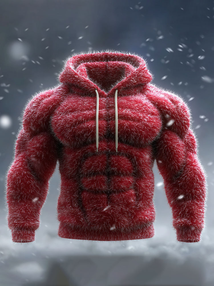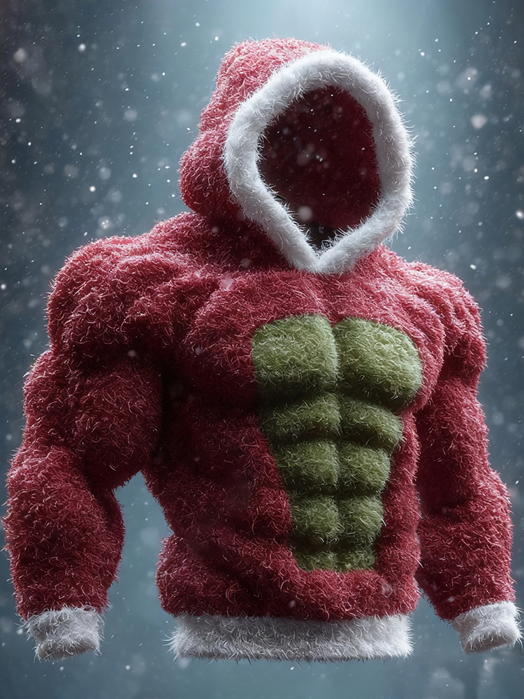Men's Christmas Muscle Lines Art Hooded Sweater