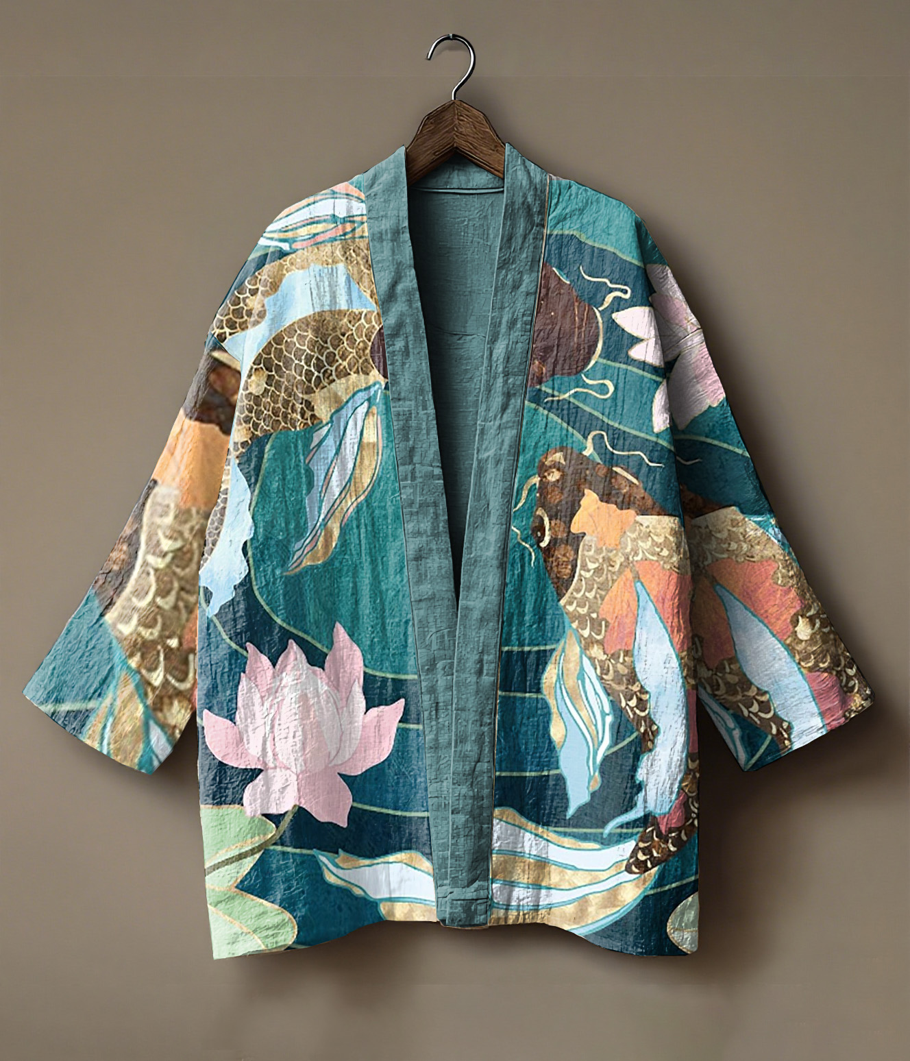 Hibiscus and Fish Theme Printed Linen and Blouse Jacket