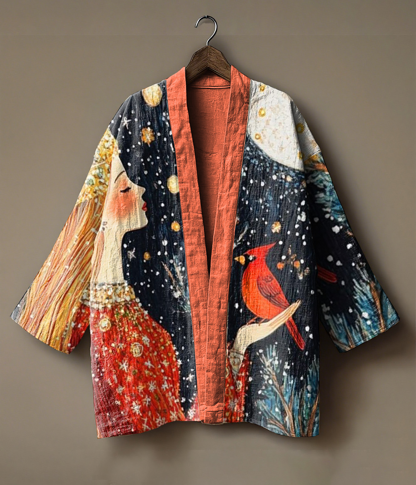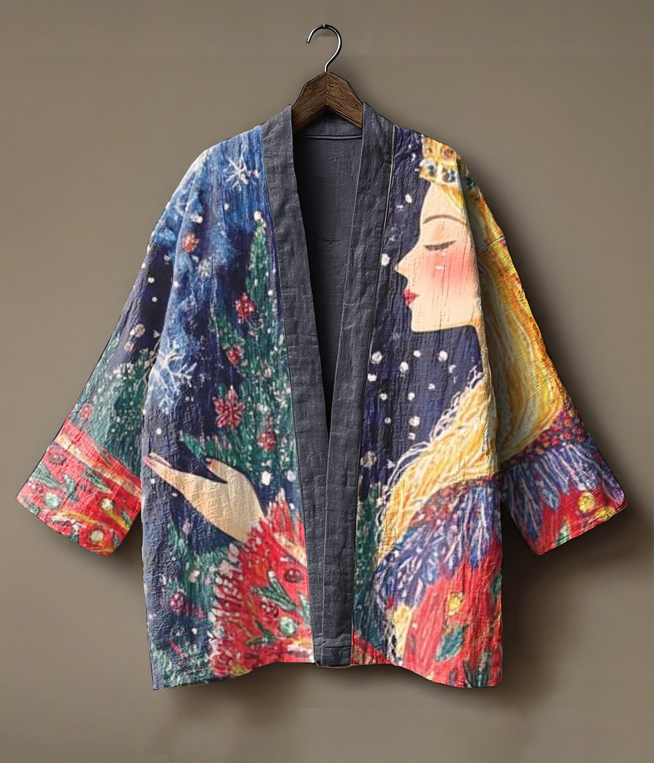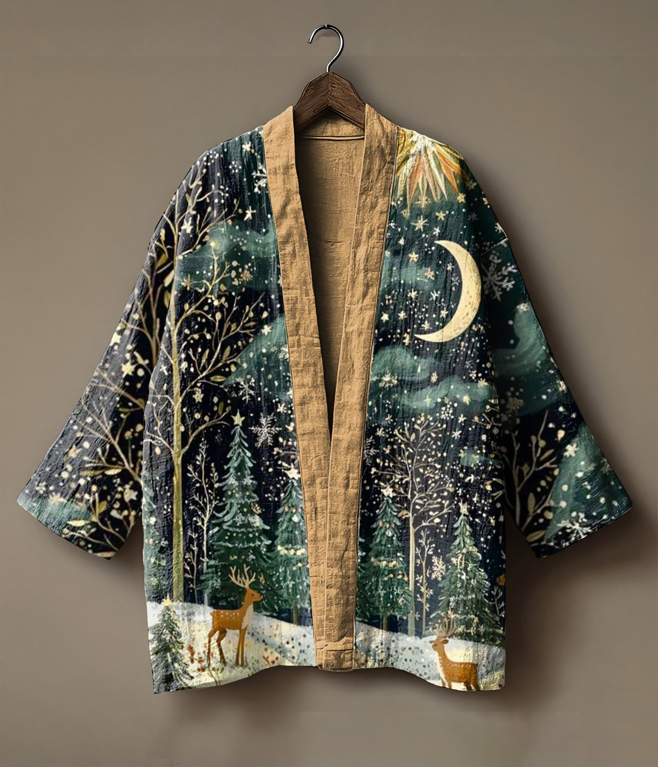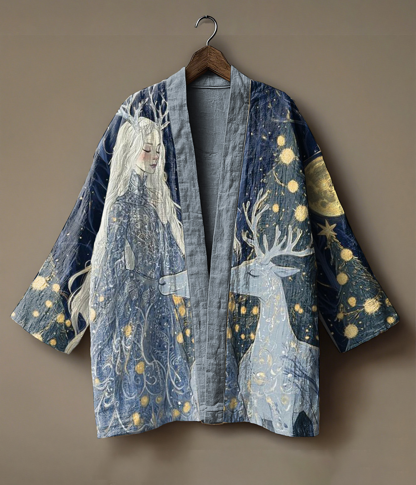 Forest elf girl and deer print linen kimono cardigan