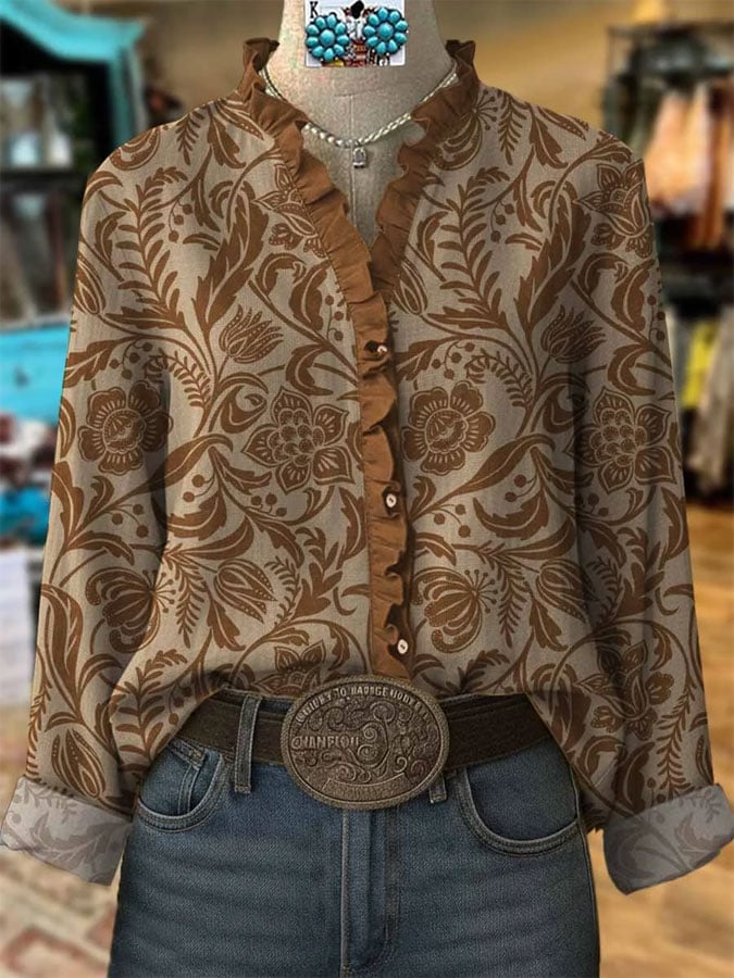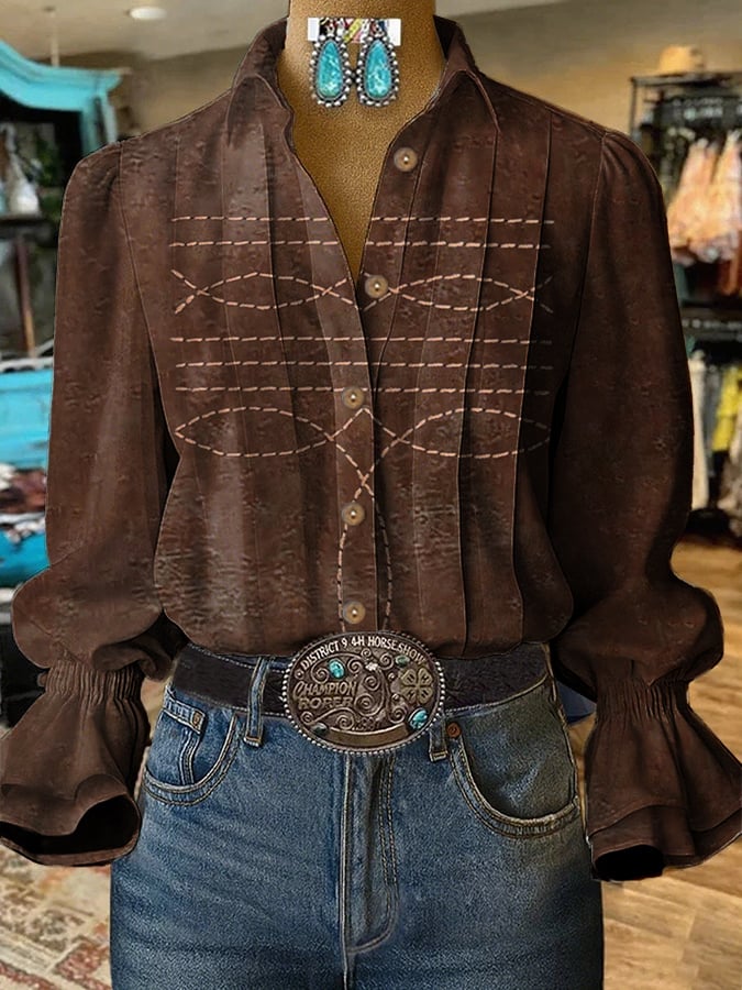 Women's Retro Creative Print Western Long Sleeve Shirt