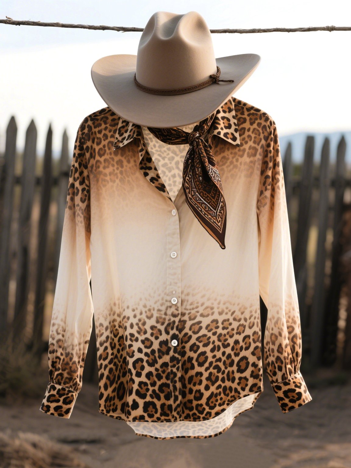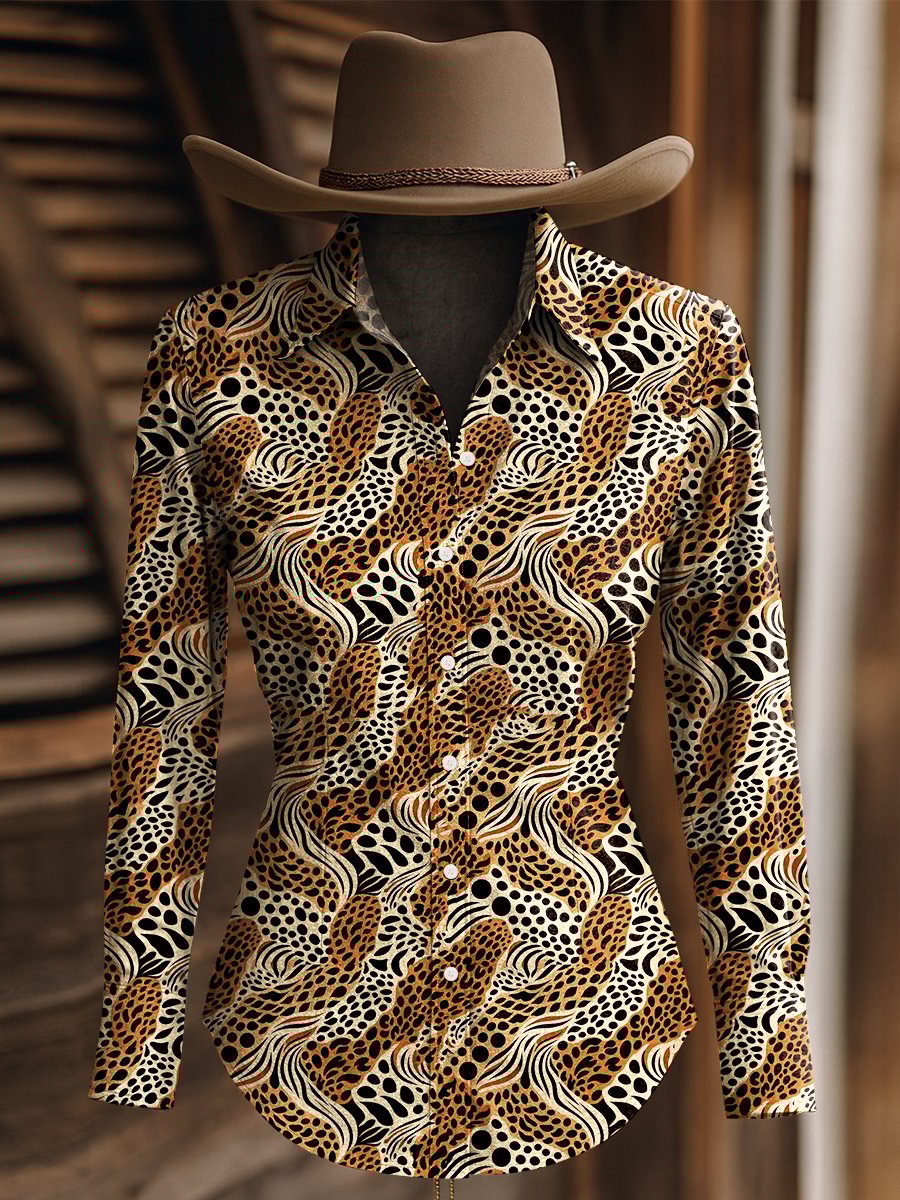 Women's Vintage Leopard Print Western Long Sleeve Shirt