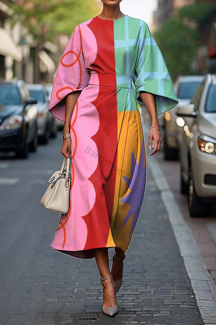 Women's Elegant Geometric Art Print Midi Dress