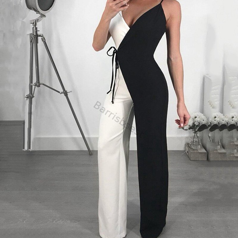 Full Length Asymmetric Sexy Color Block Mid Waist Women's Jumpsuit