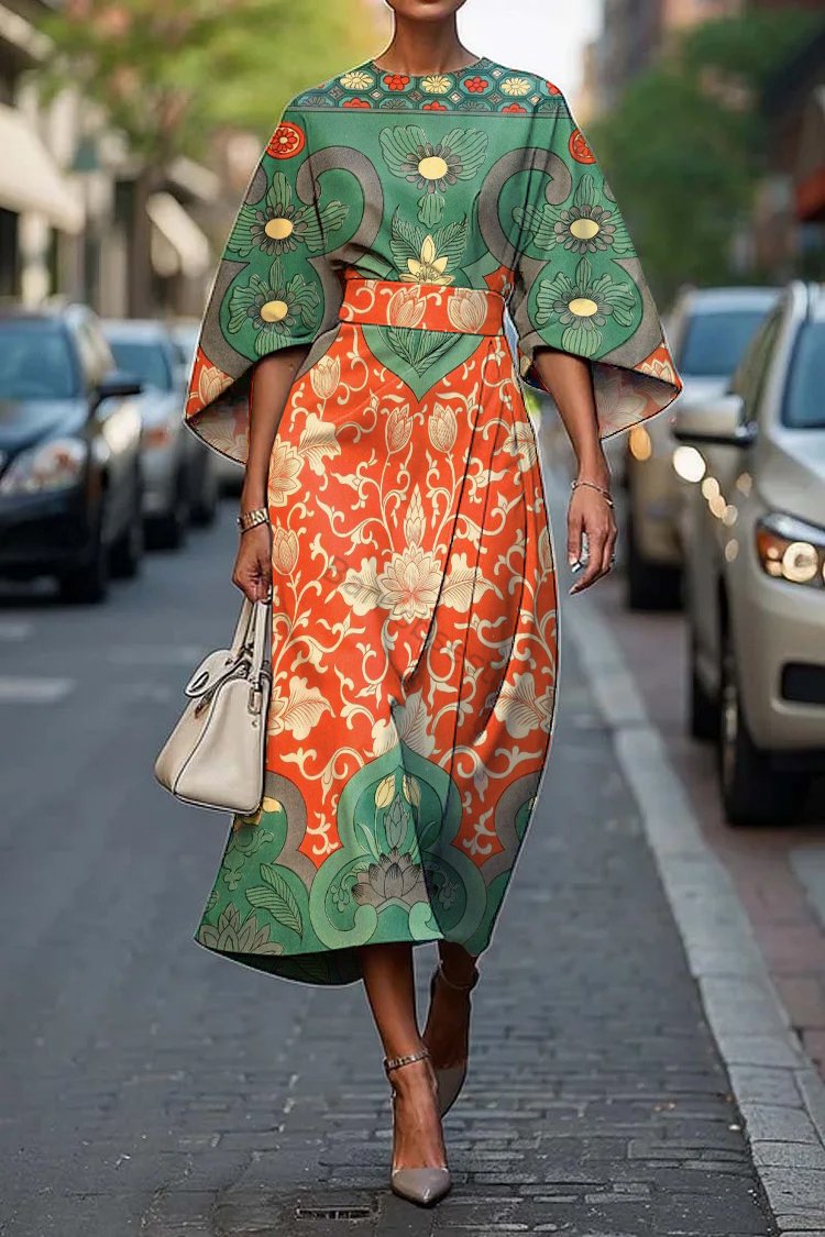 Women's Vintage Elegant Ethnic Floral Print Midi Dress