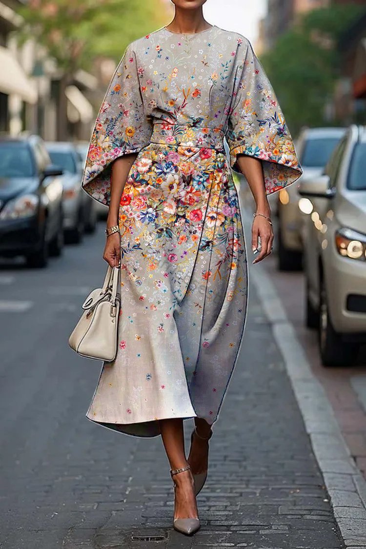 Women's Elegant Classic Floral Art Print Midi Dress
