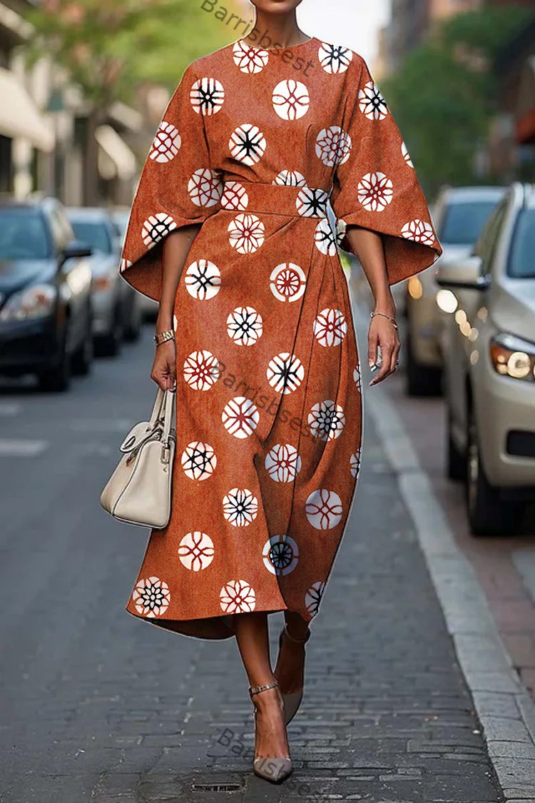 Women's Elegant Polka Dot Print Midi Dress