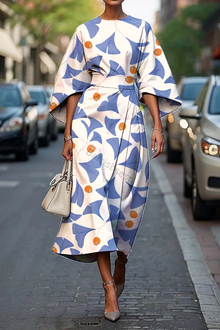 Women's Vintage Elegant Ginkgo Print Midi Dress