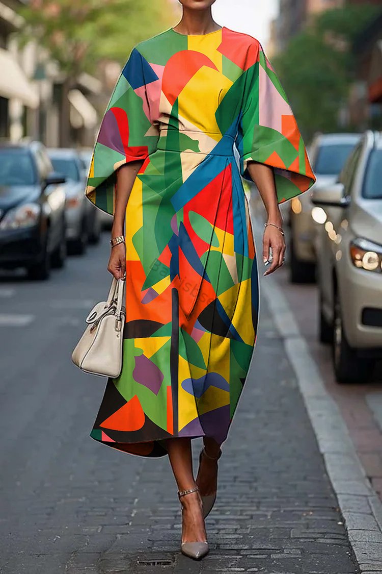 Women's Elegant Abstract Art Print Midi Dress