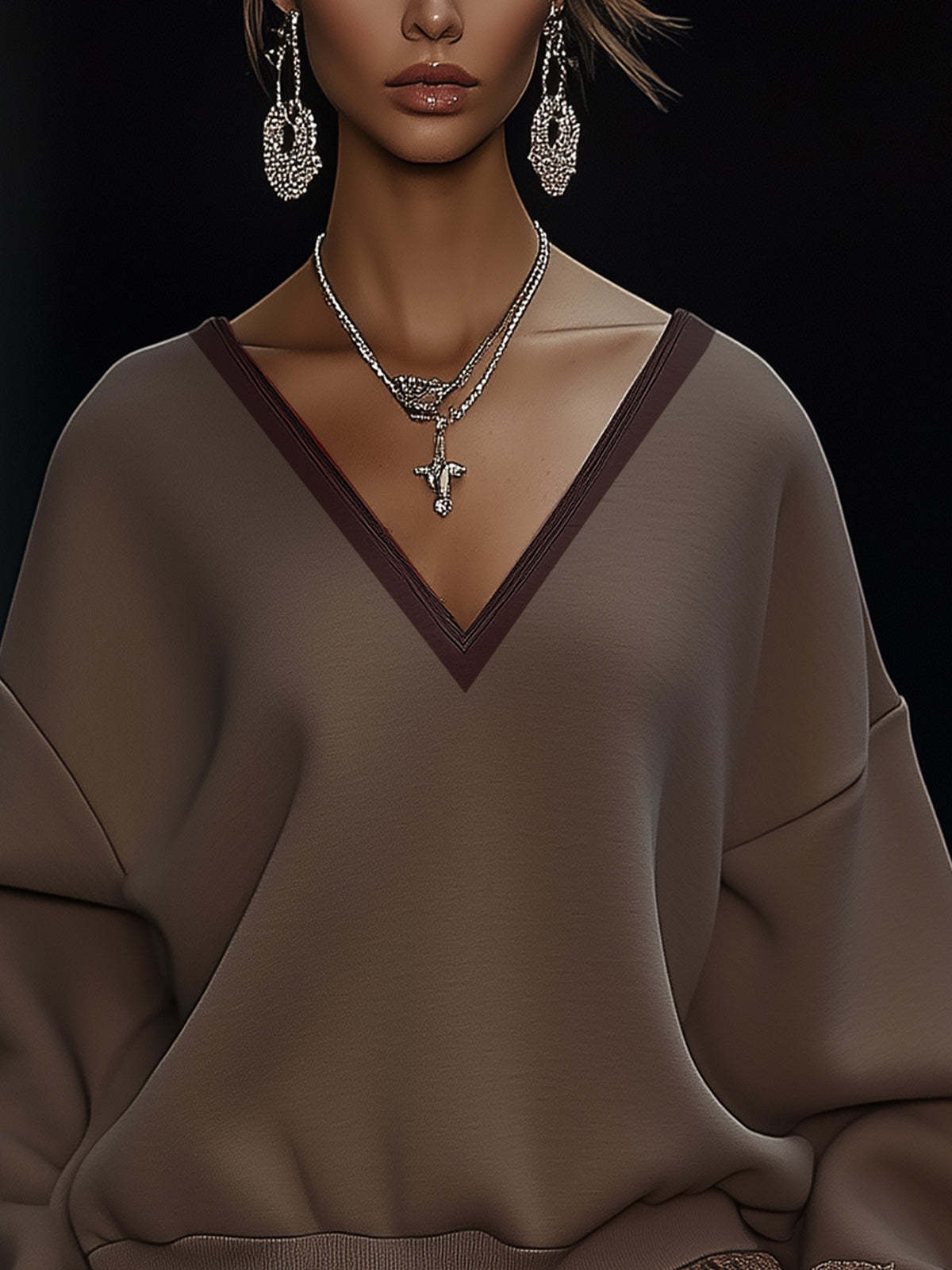 Brown Dress With Layered Lace Ruffle Hem And Safety Pants