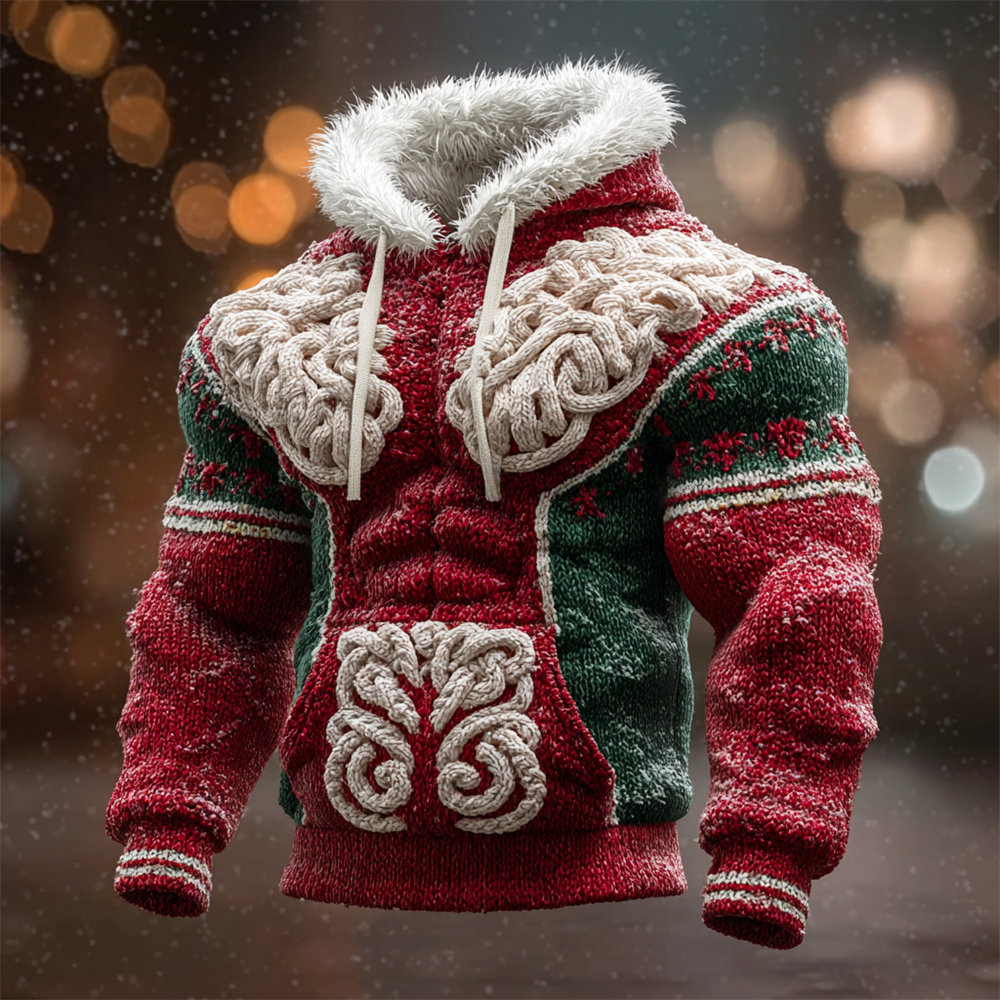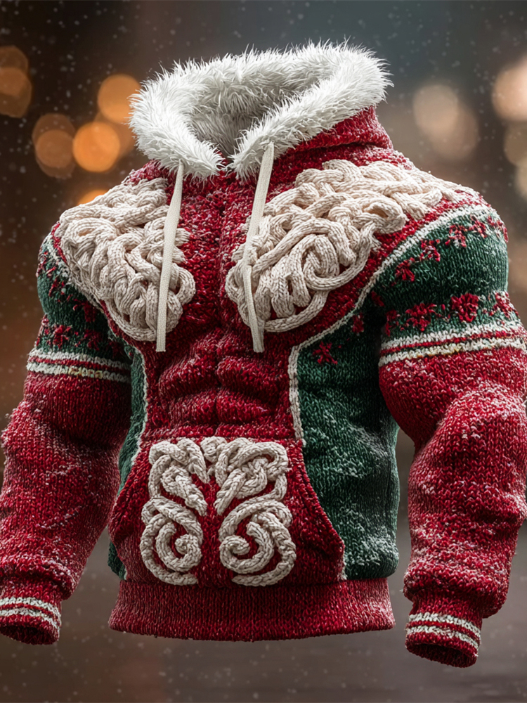 Christmas Celtic Knot Knit Pattern Men's Hooded Sweater