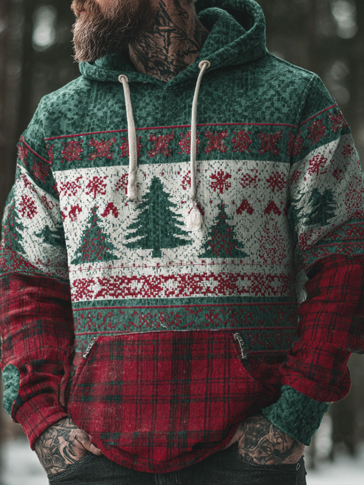 Christmas Men's Retro Check Print Hooded Sweatshirt