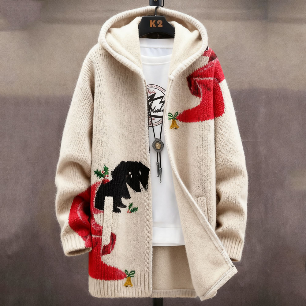 Cute Christmas Dog Pattern Cozy Knit Hooded Cardigan