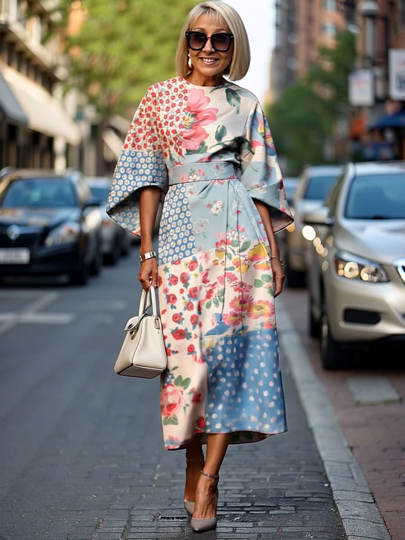 Formal Dress Hip Wrap Skirt Waist Party Skirt Round Neck Sleeve Design Dress