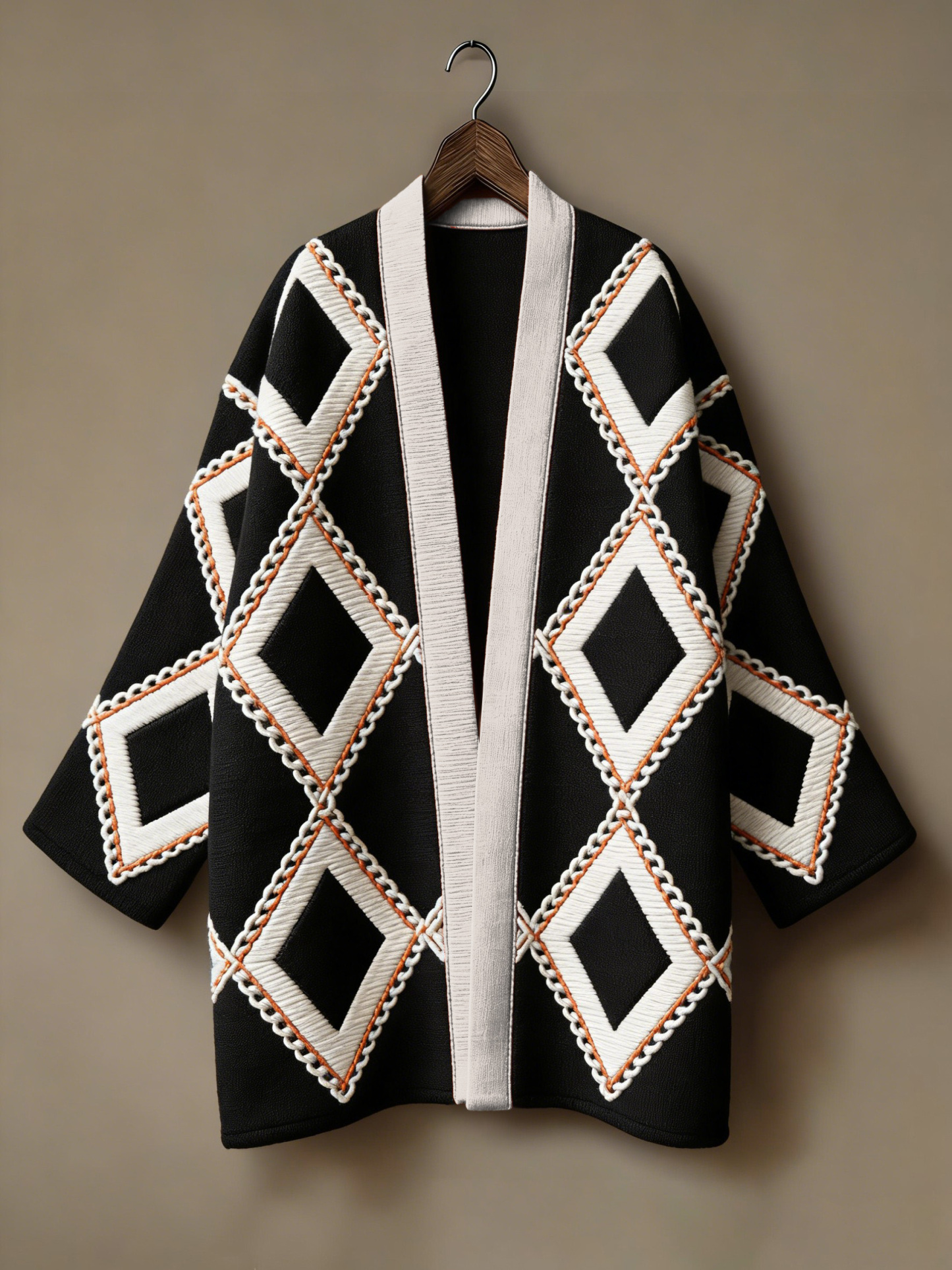 Winter warmest flannel printed and embroidered pattern kimono cardigan
