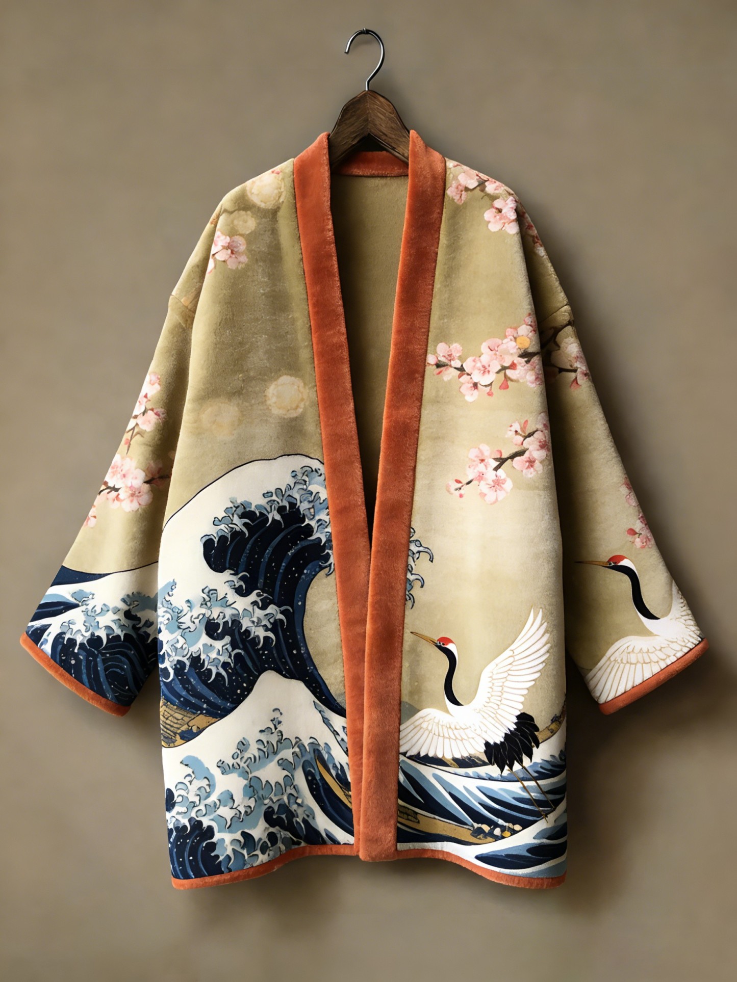 Winter warmest flannel printed and embroidered pattern kimono cardigan