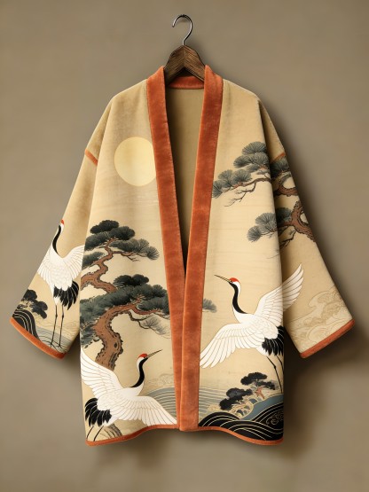 Winter warmest flannel printed and embroidered pattern kimono cardigan