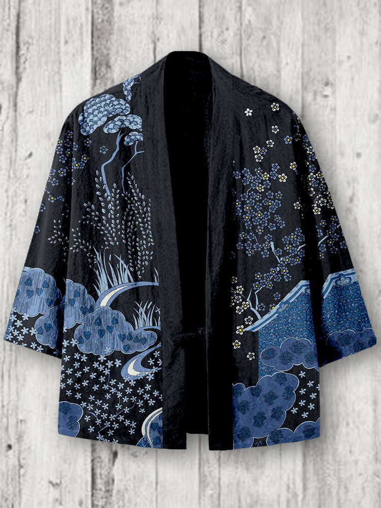 Japanese Traditional Pattern Linen Blend Kimono Cardigan
