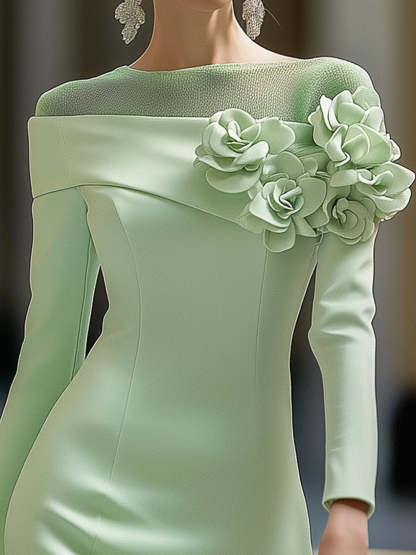 Shipping Light Green Midi Pencil Dress With Mesh And 3D Flower Decoration