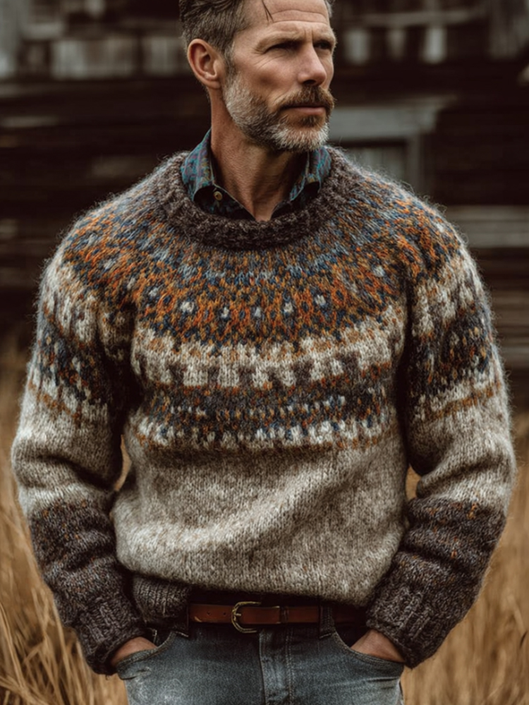 Men's Fer Island Pattern Multi-color Knitted Warm Sweater