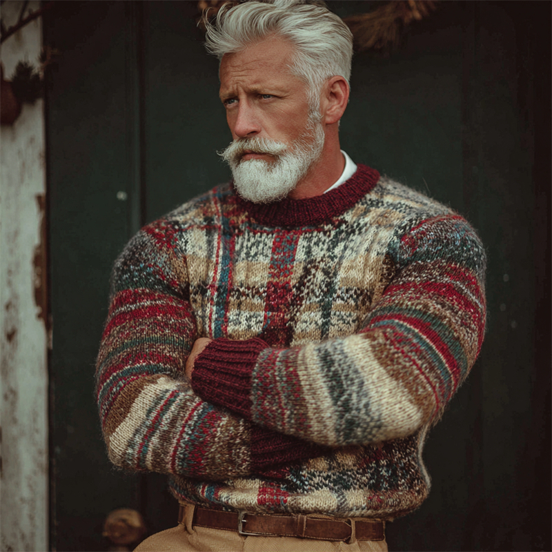 Men's Vintage 70s Retro Christmas Plaid Cozy Knit Sweater