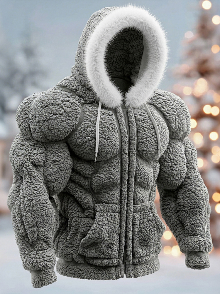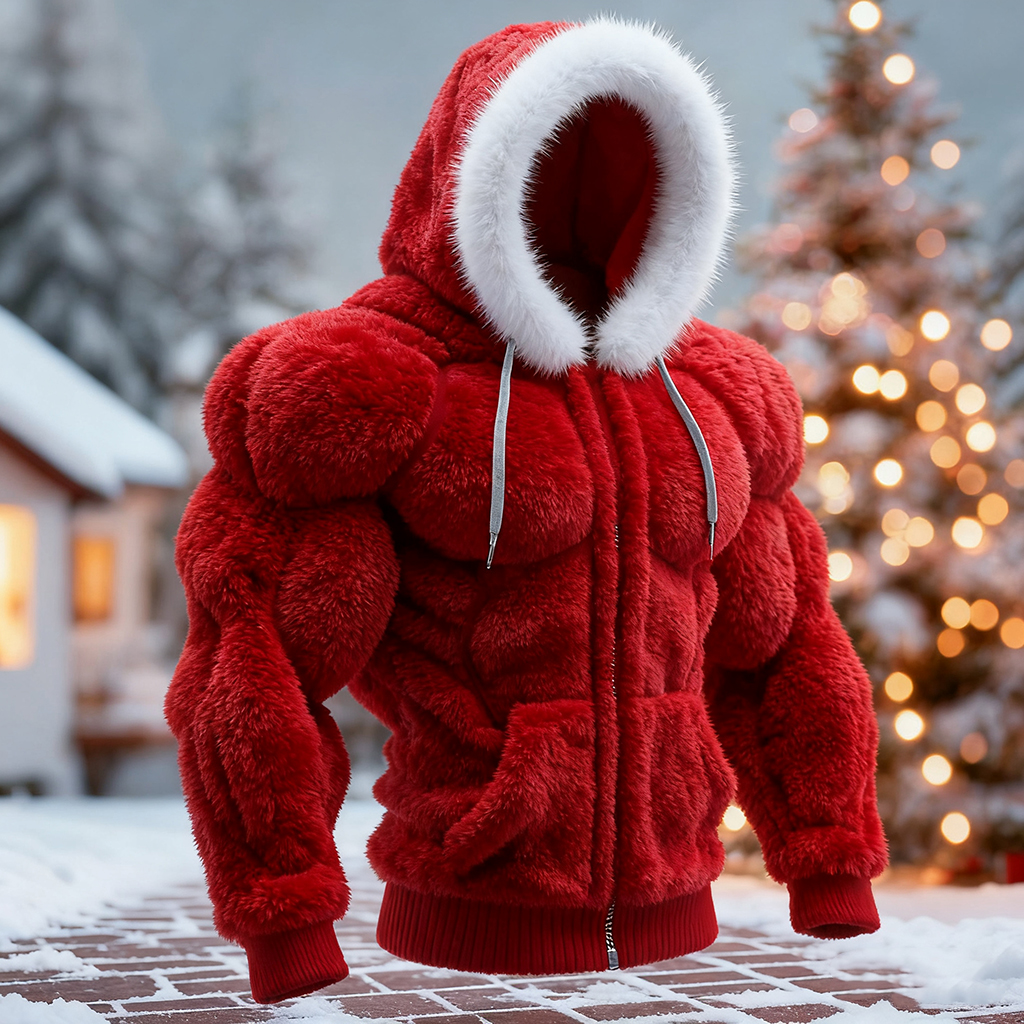 Men's Vintage Christmas Art Cozy Plush Zip-up Hoodie