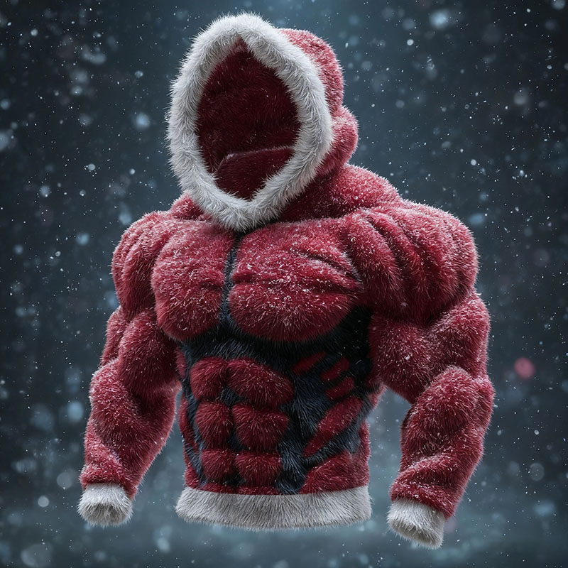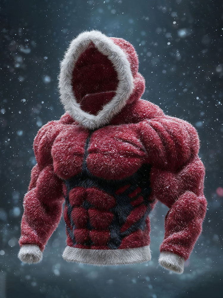 Men's Vintage Christmas Muscle Lines Art Cozy Plush Hoodie
