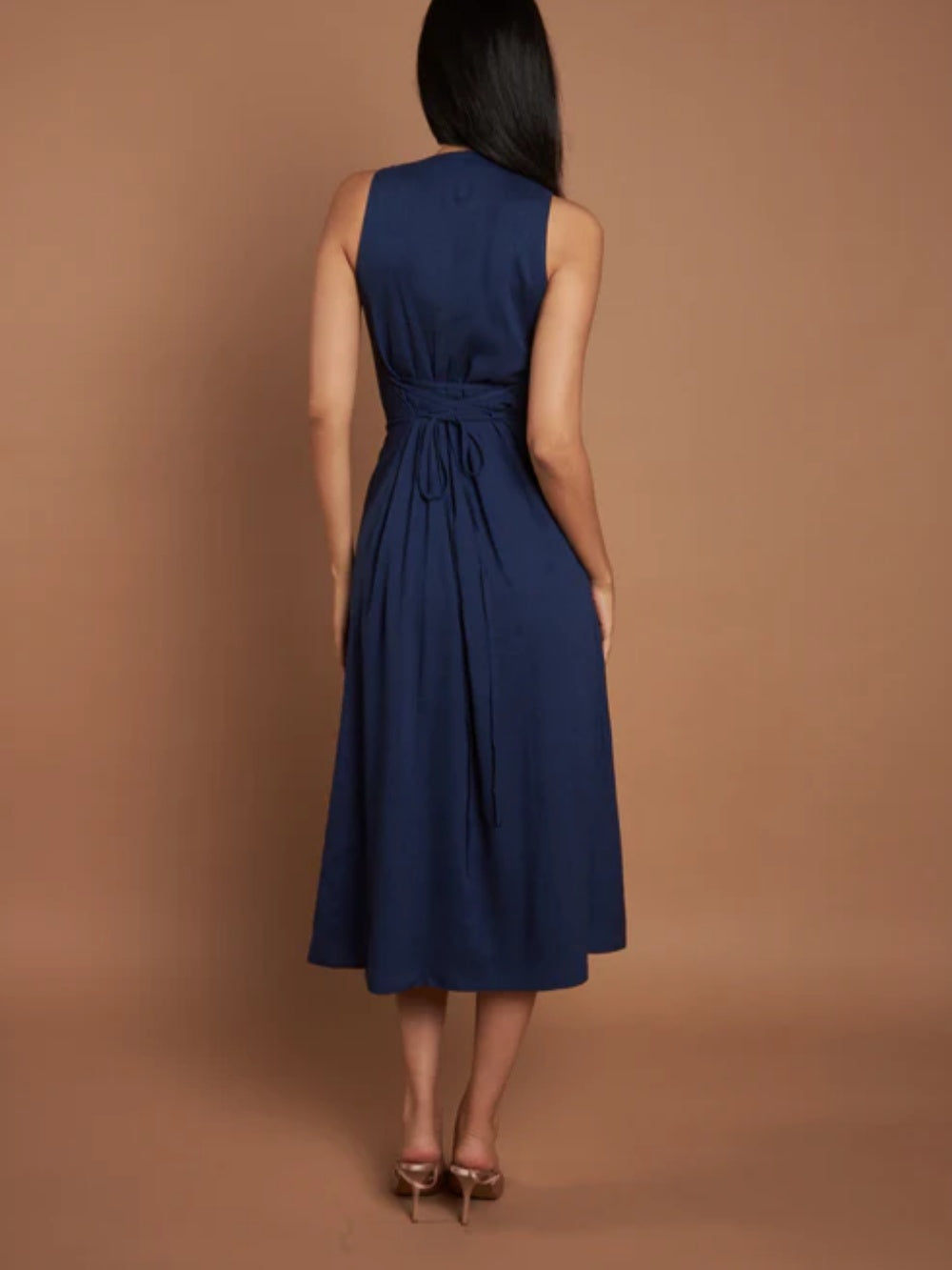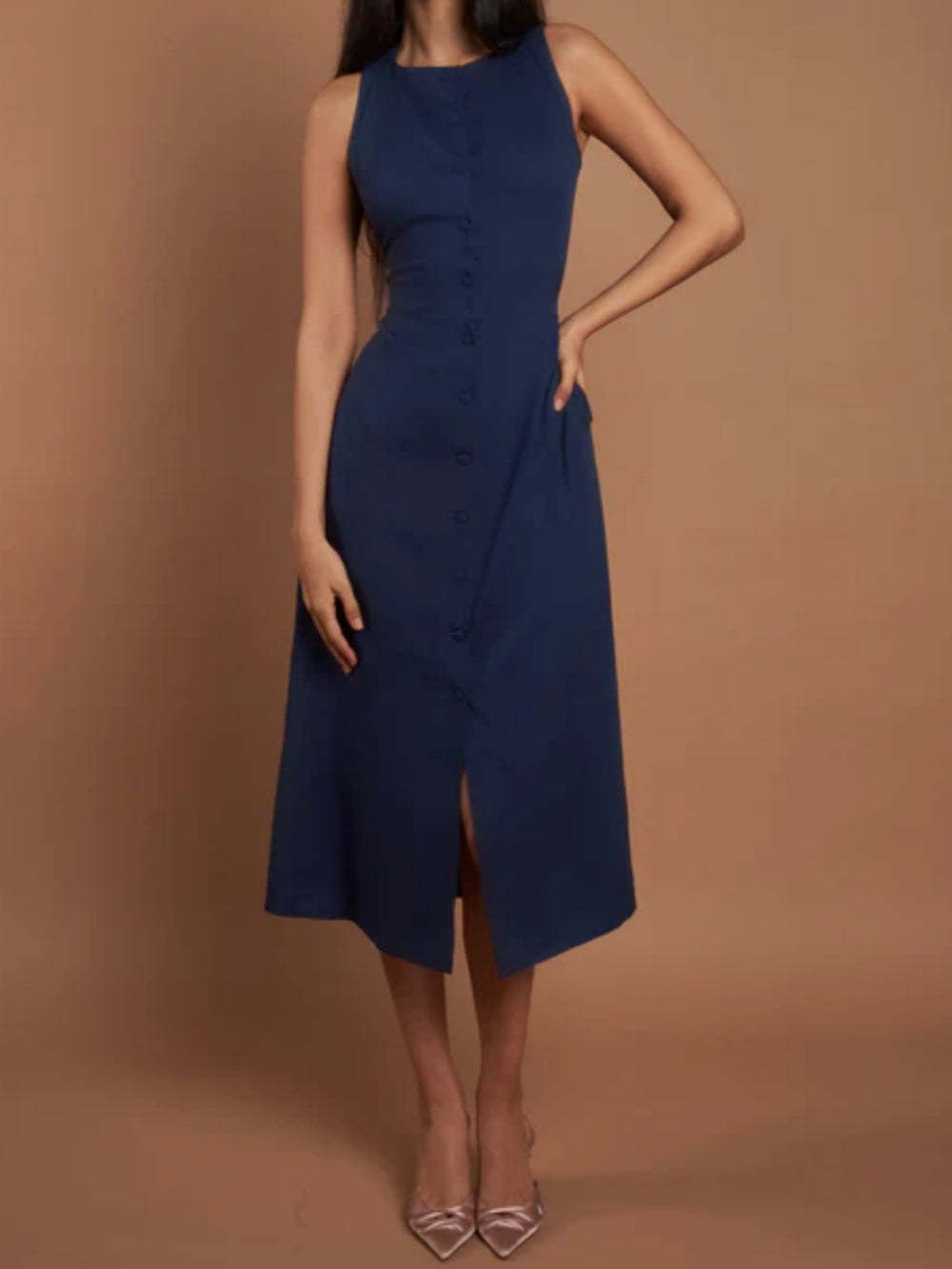 Navy Sleeveless Button Midi Dress