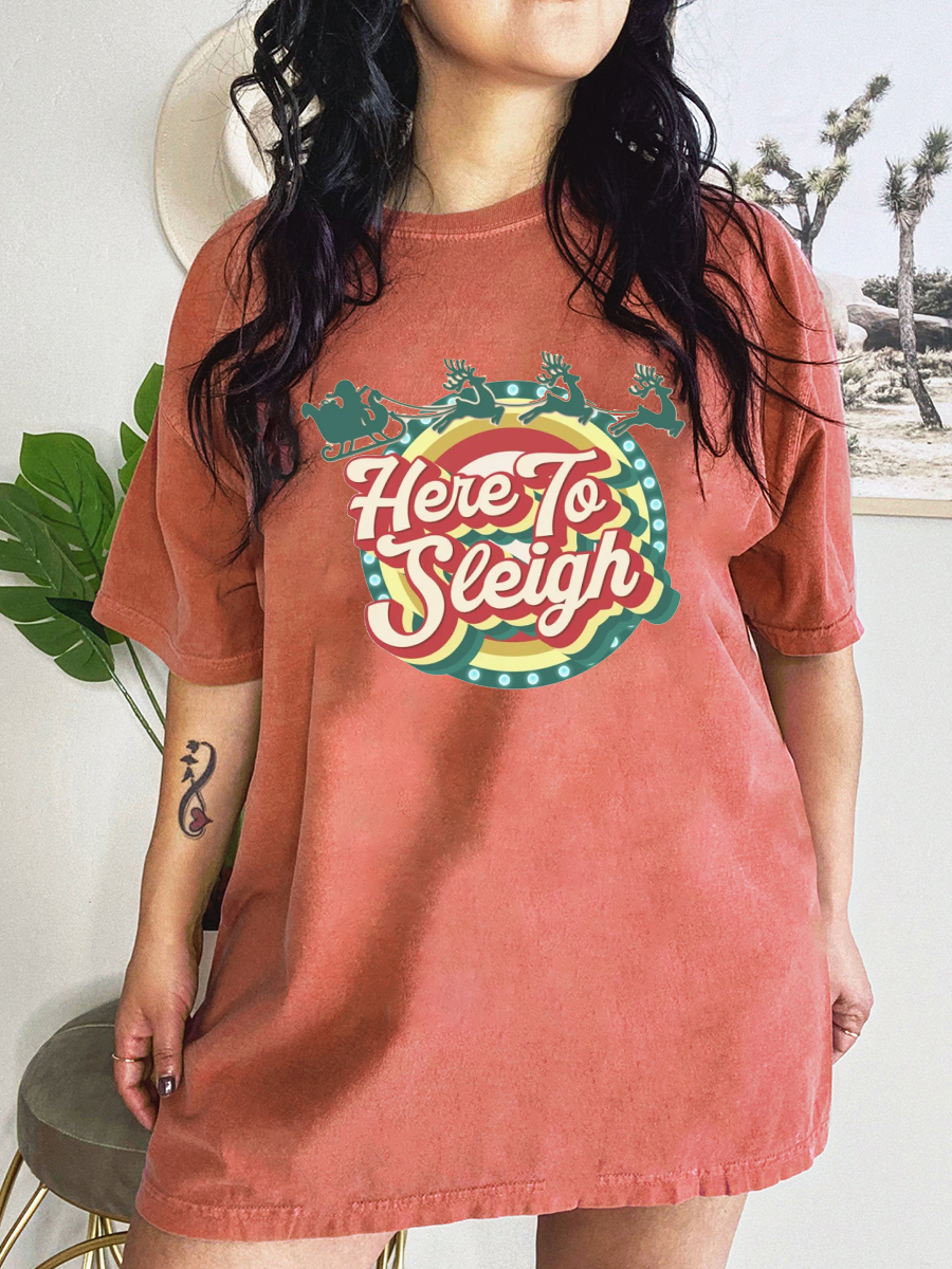 Oversized Retro Here To Sleigh Preppy Christmas T-Shirt