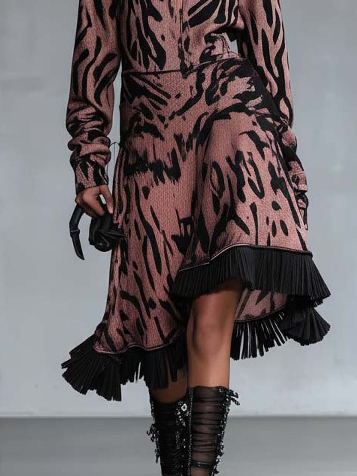Pink Hooded Sweatshirt Midi Dress With Ruffles And Print