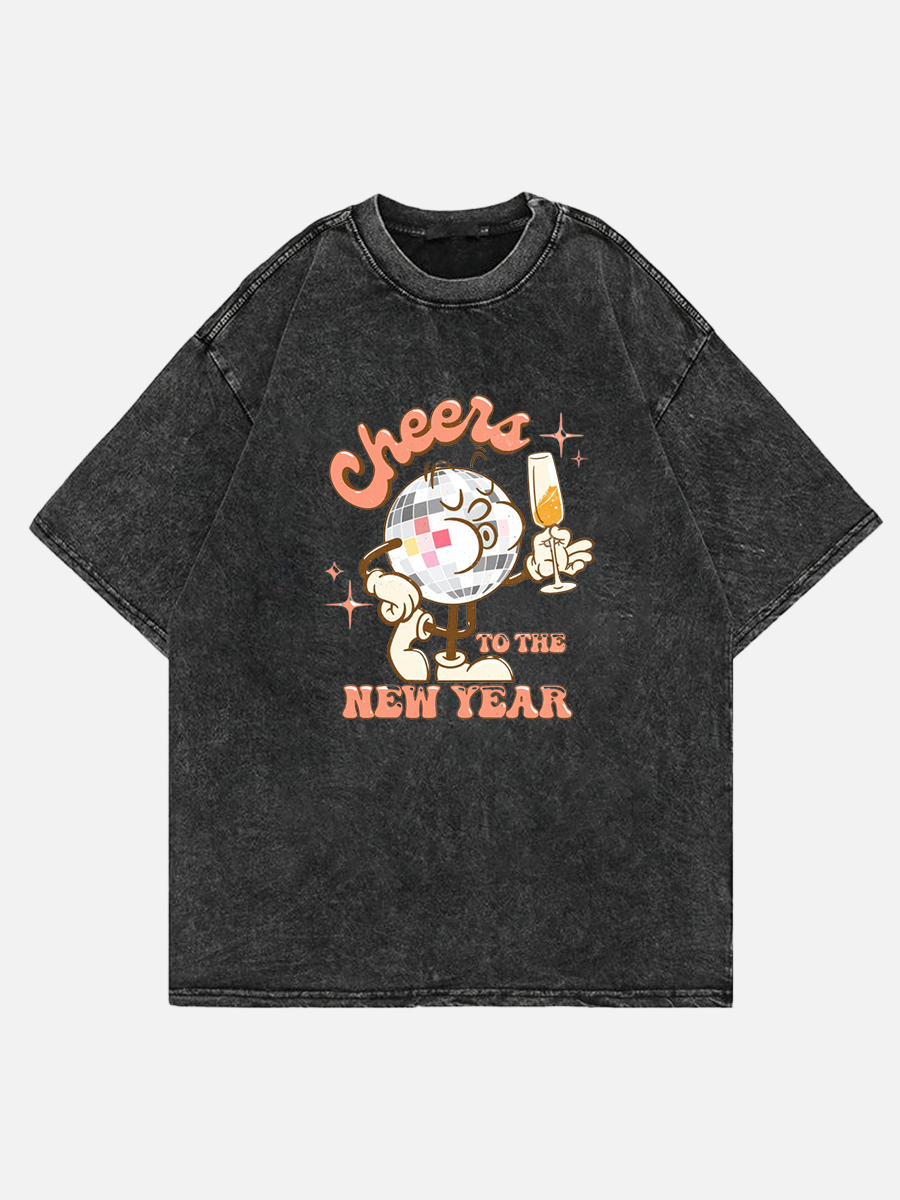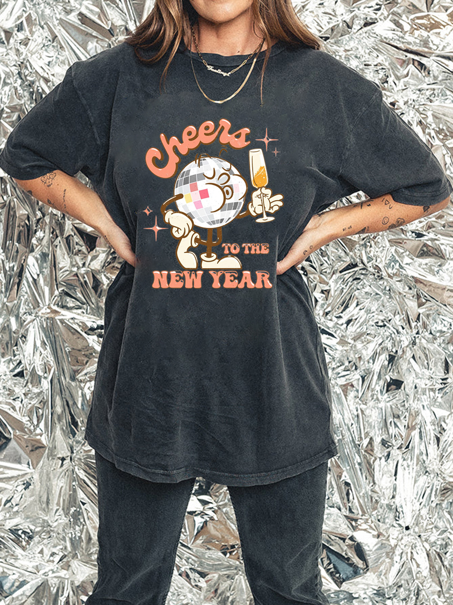 Plus Size Cheer To The New Year Washed T-Shirt