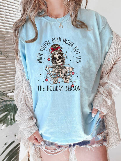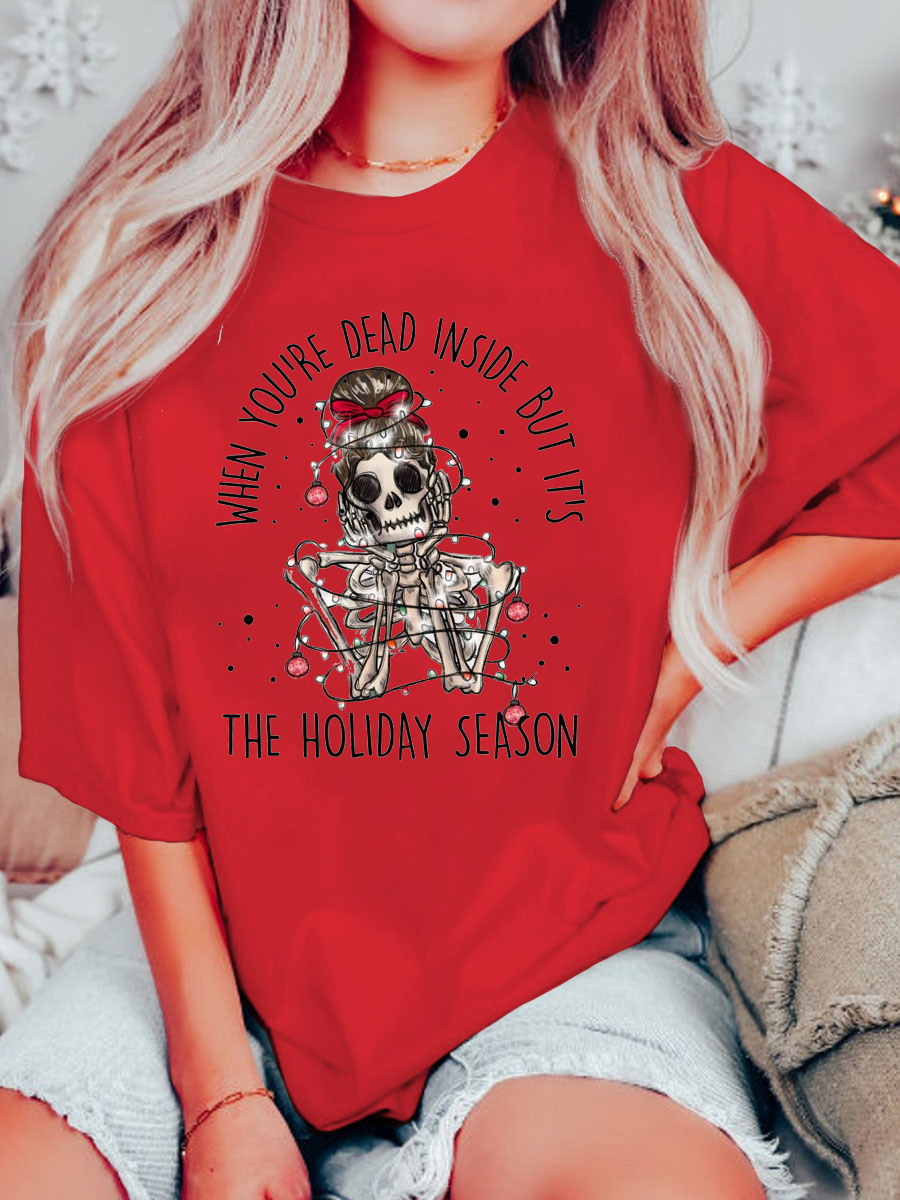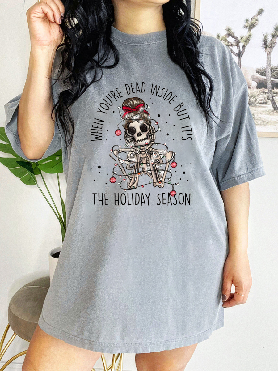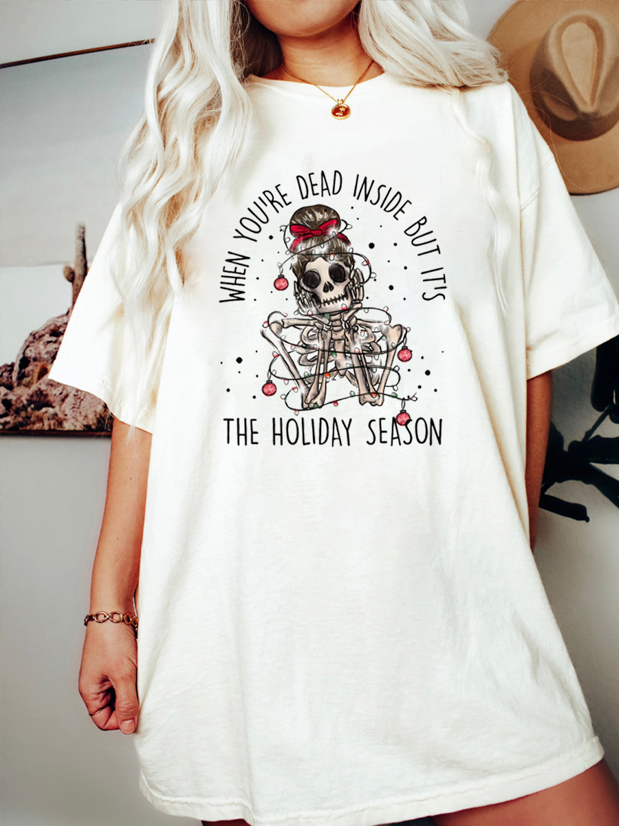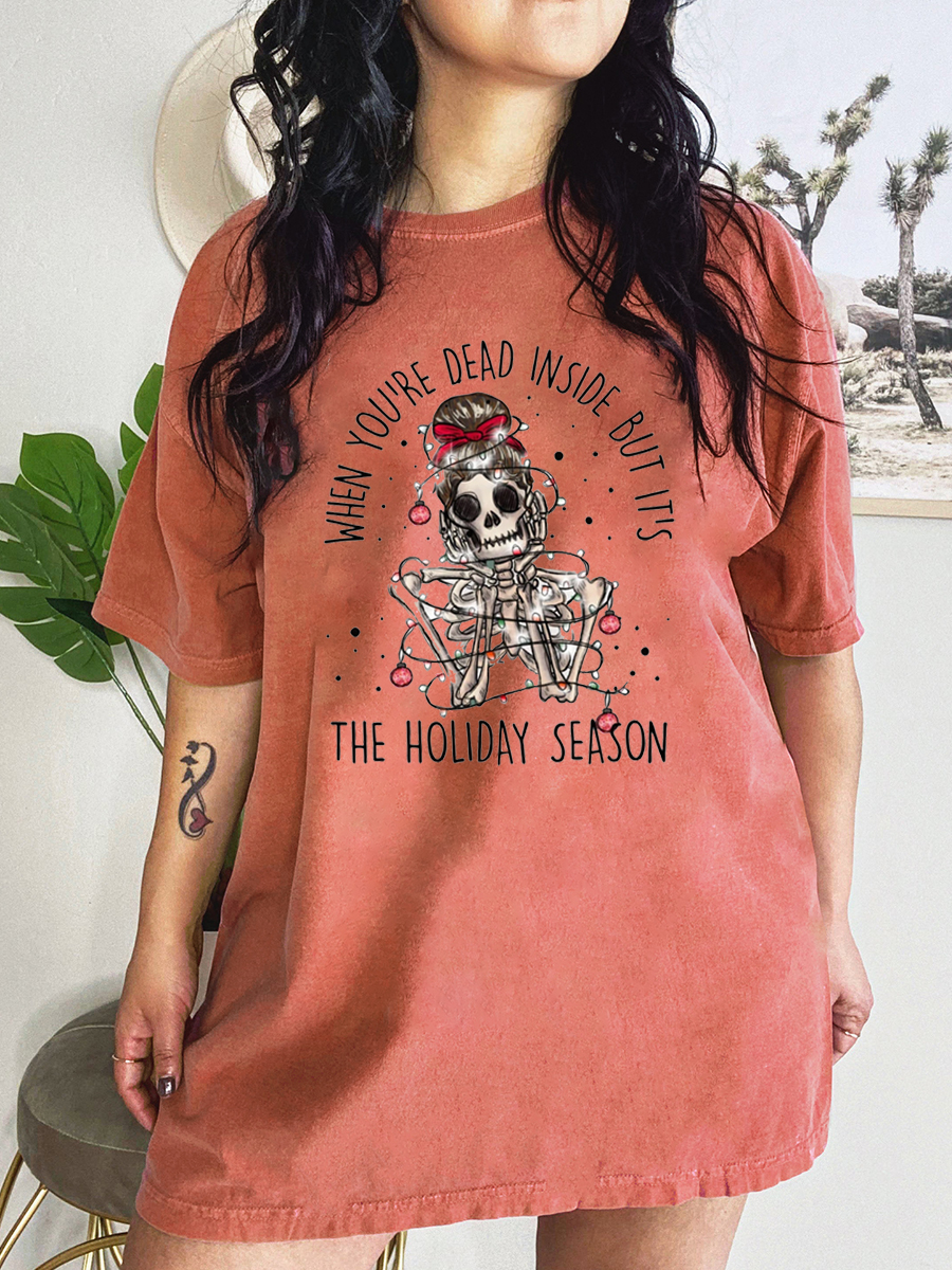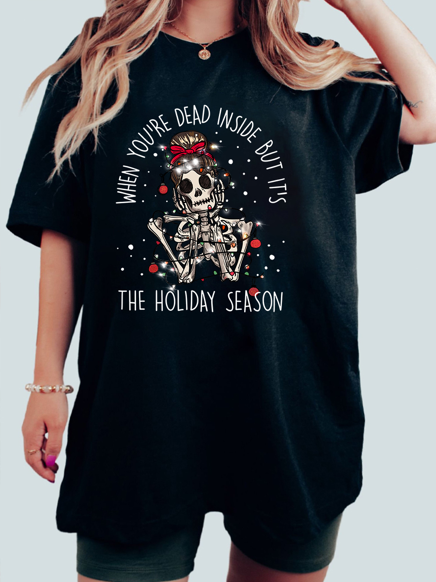 Plus Size Dead Inside Holiday Skeleton Shirt