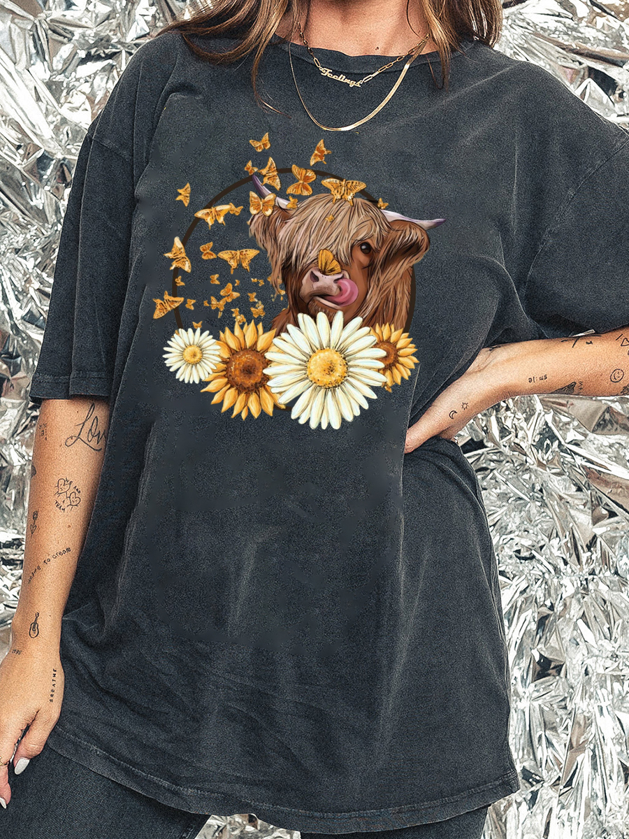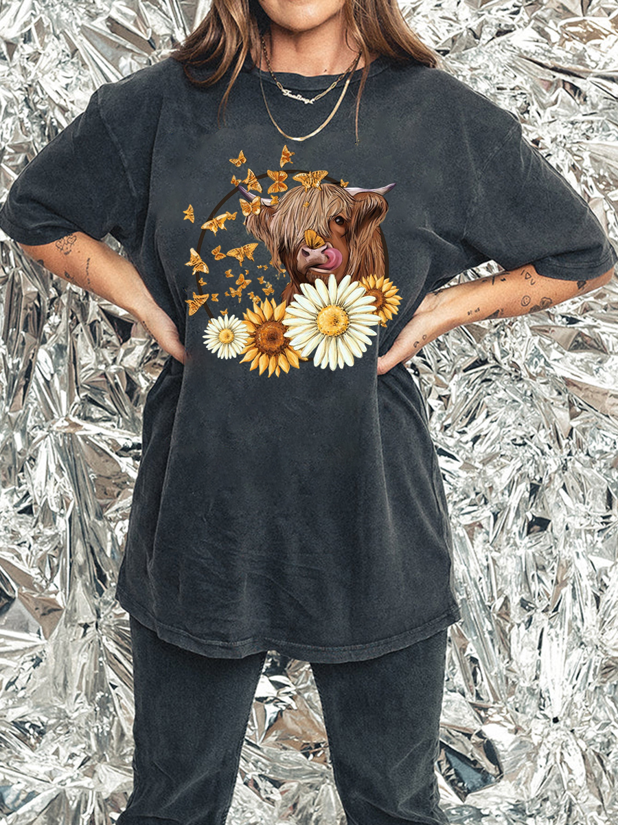 Plus Size Highland Cow Washed T-Shirt