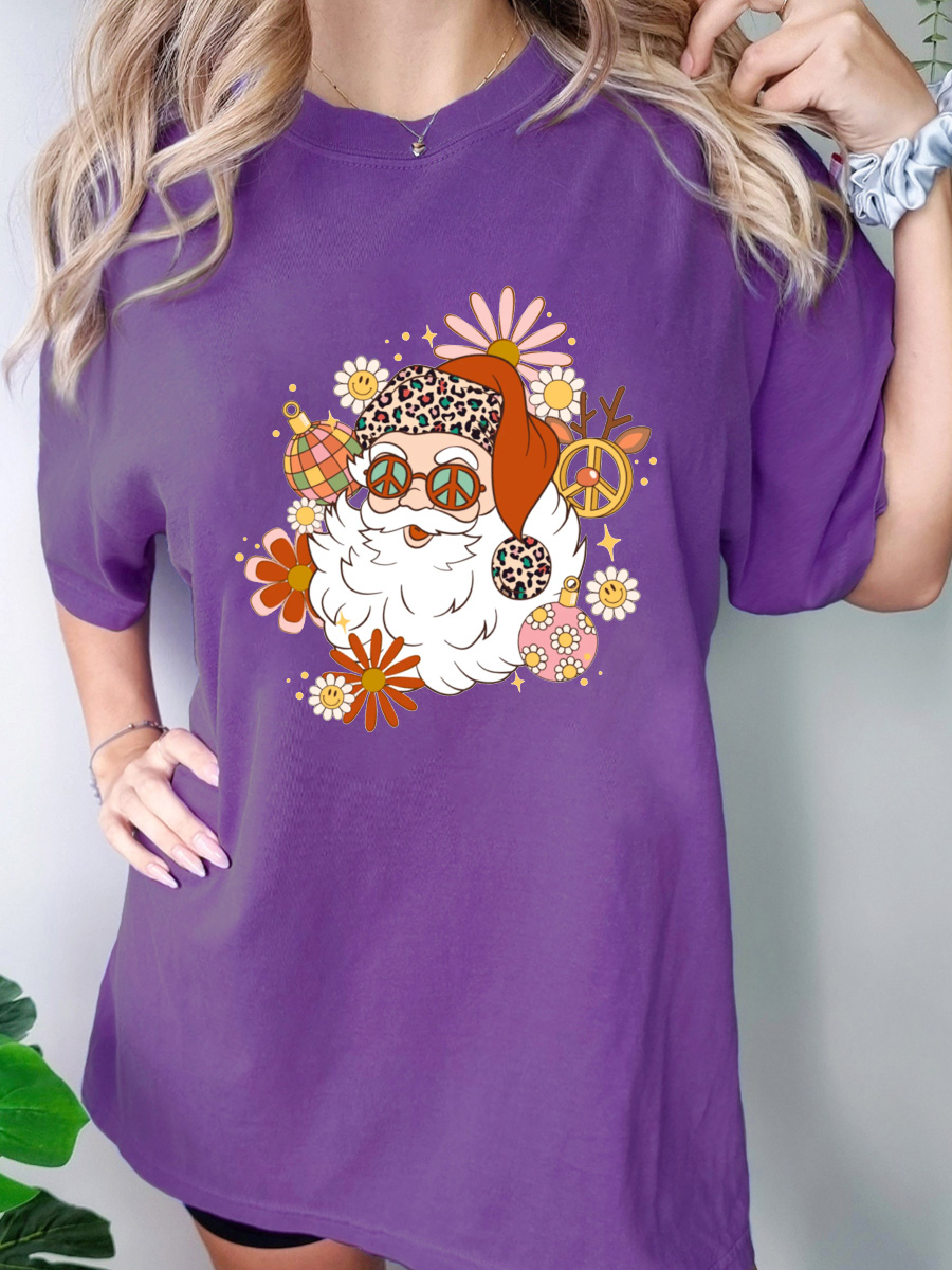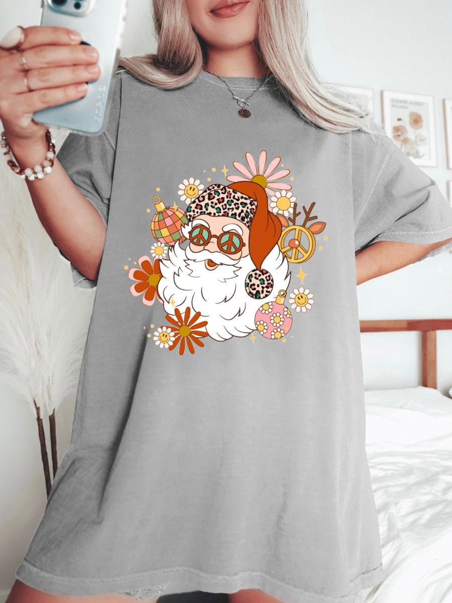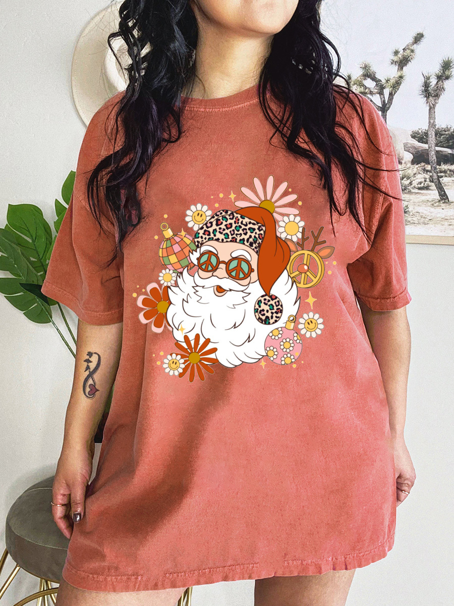 Plus Size Hippie Santa Christmas T-shirt