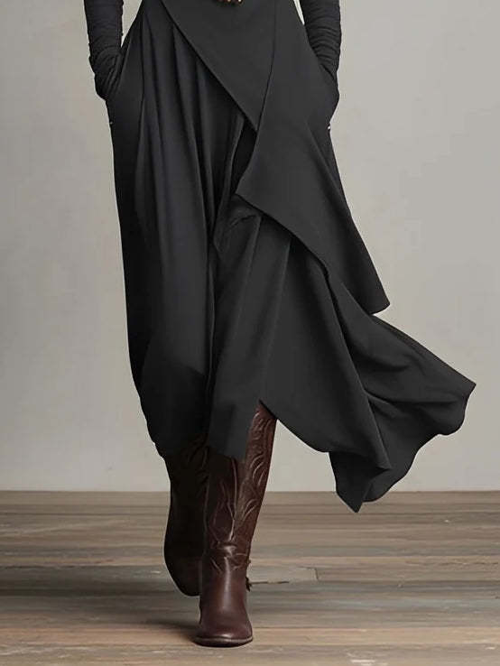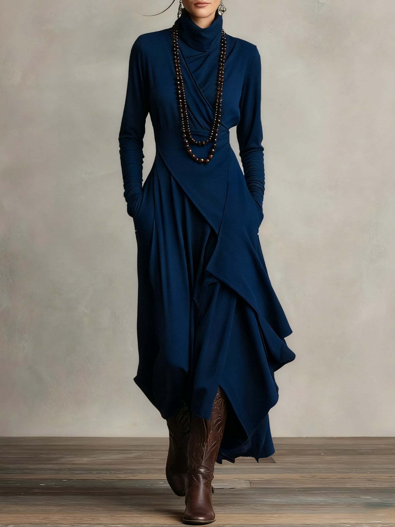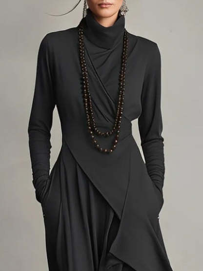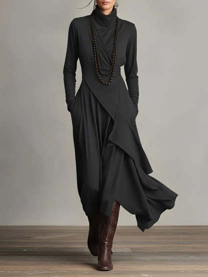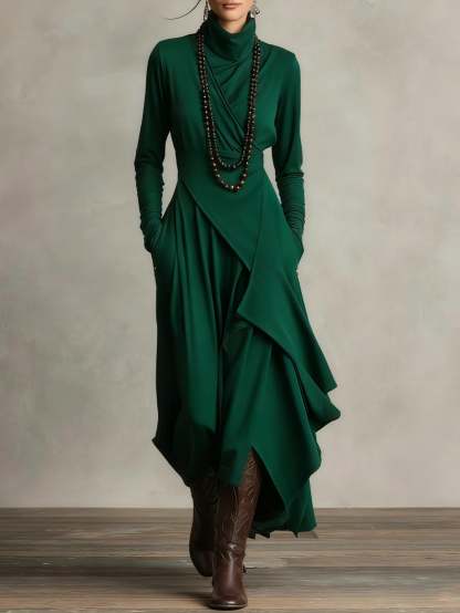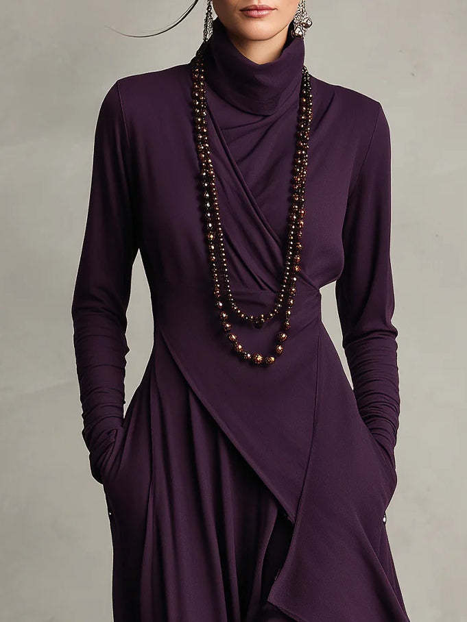 Purple High-neck Asymmetrical Pleated Maxi Dress(Necklace not included)