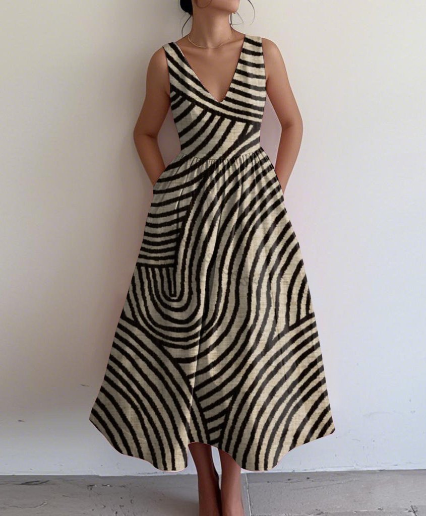 Retro Elegant Abstract Print V Neck Sleeveless Dress
