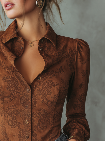 Retro Paisley Eco-friendly Suede Long-sleeved Blouse