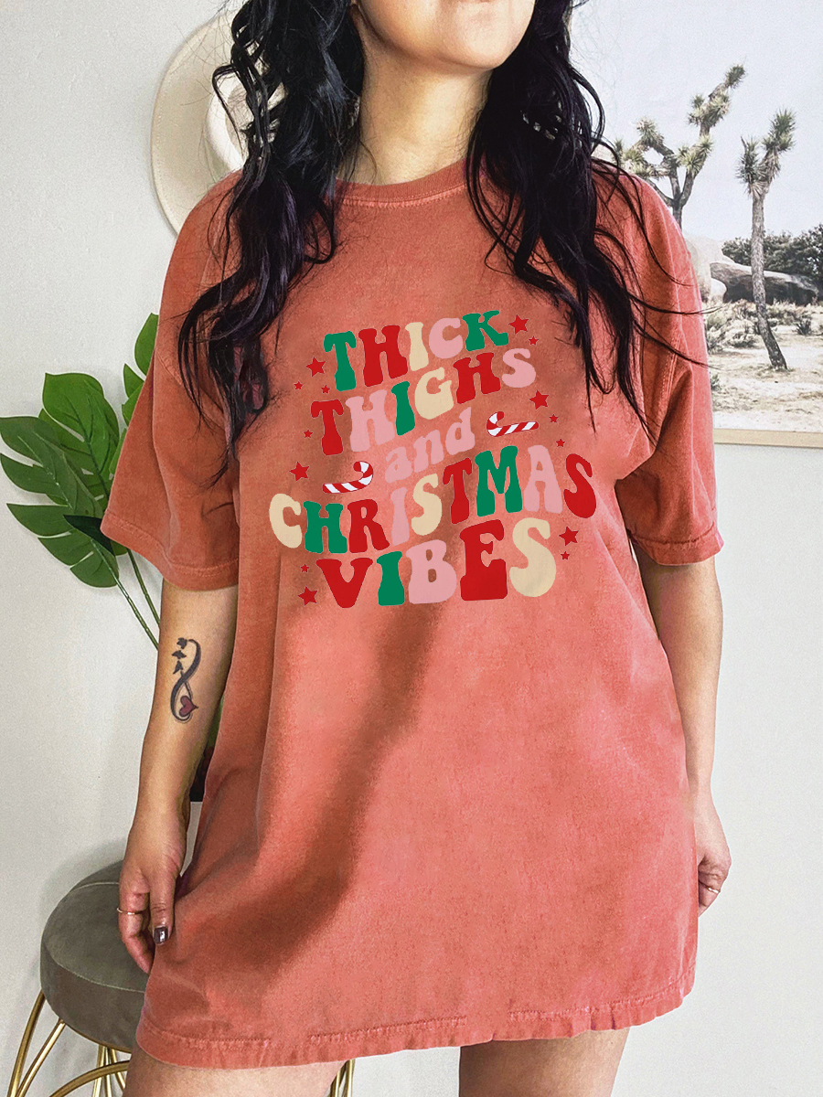 Thick Thighs And Christmas Vibes Plus Size T-Shirt