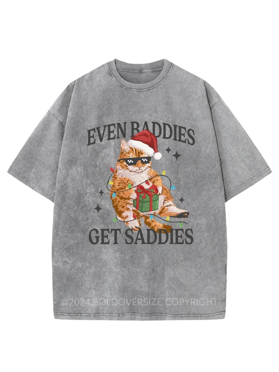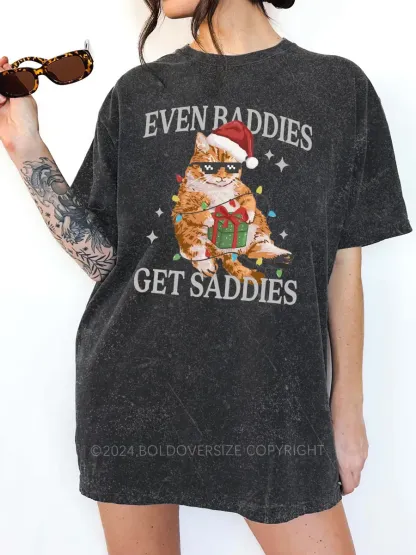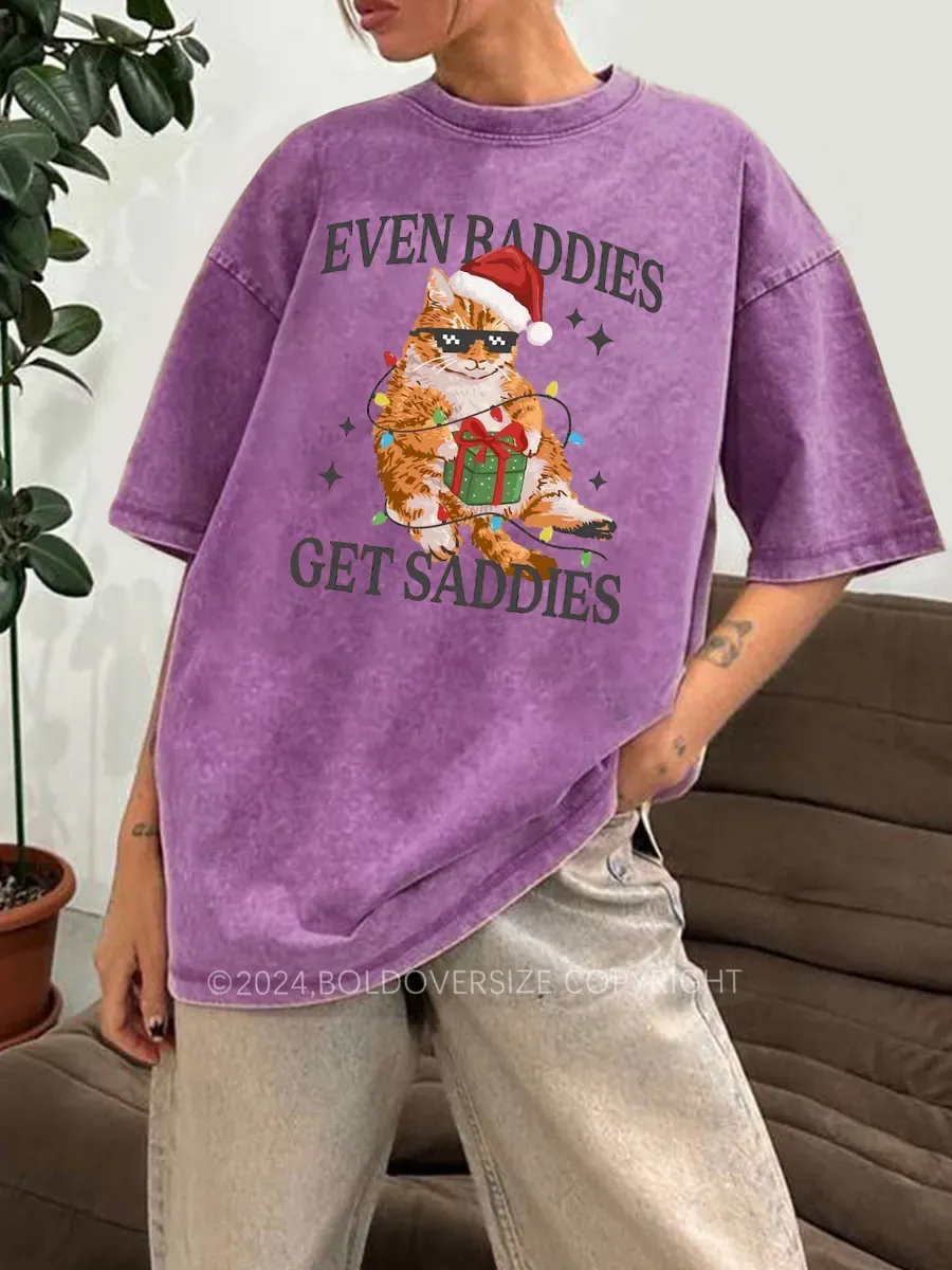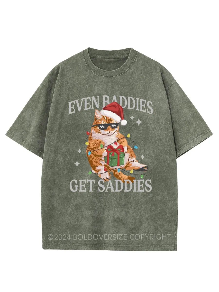 Vintage Funny Christmas Cat Washed T-Shirt