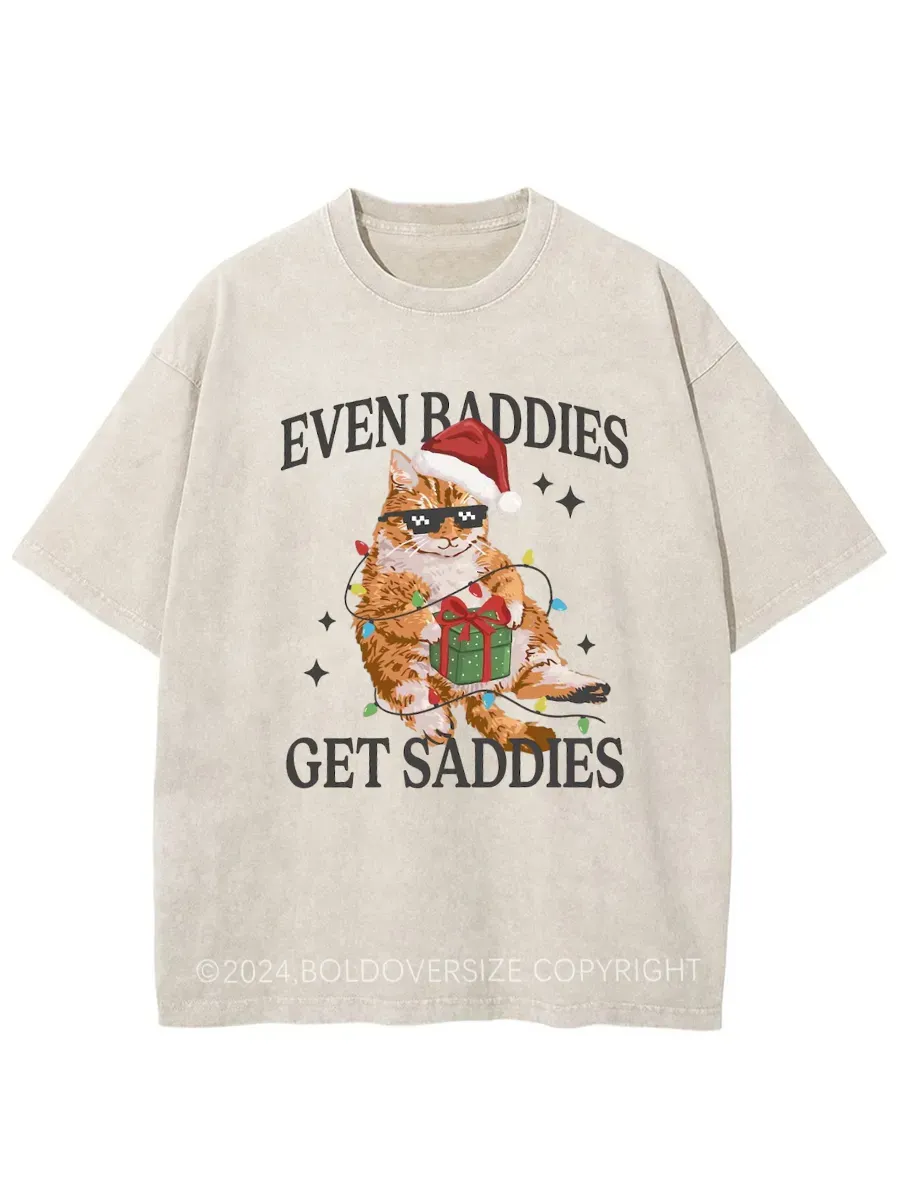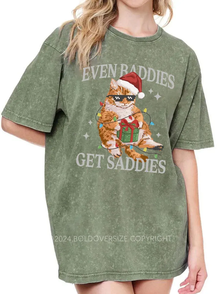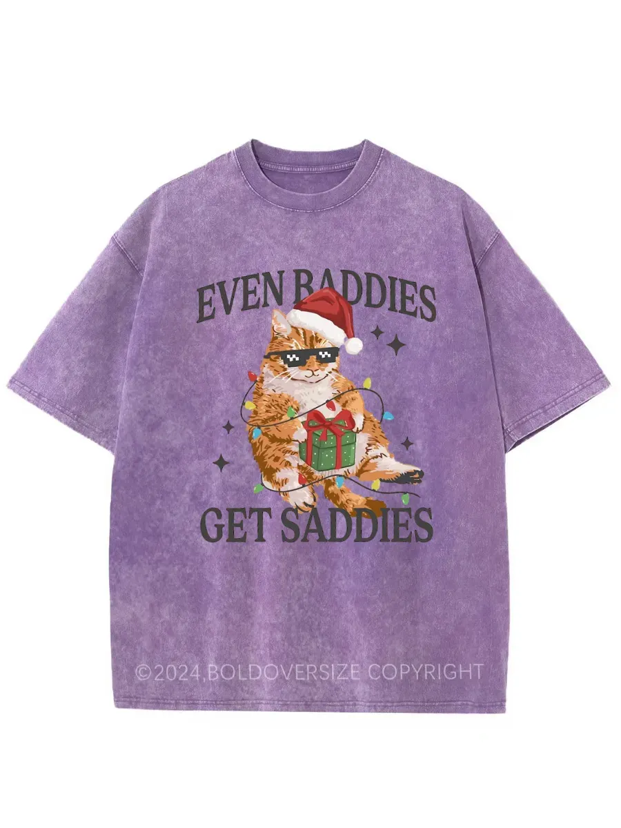 Vintage Funny Christmas Cat Washed T-Shirt