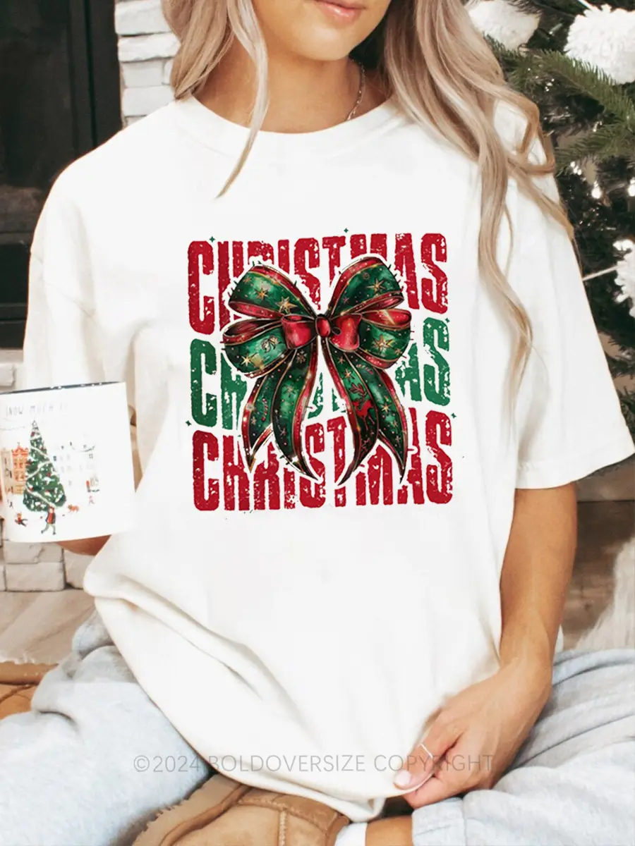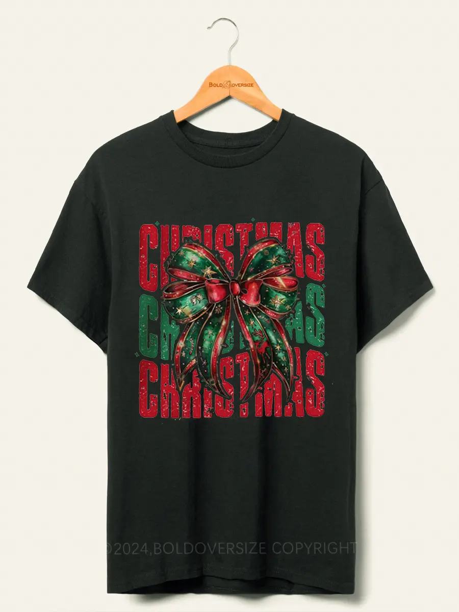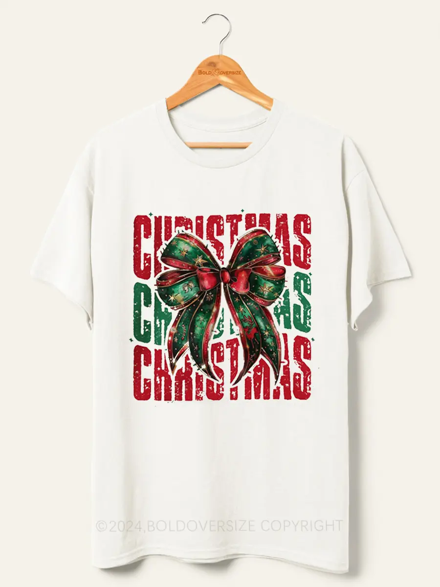 Vintage Christmas Coquette Bow T-Shirt