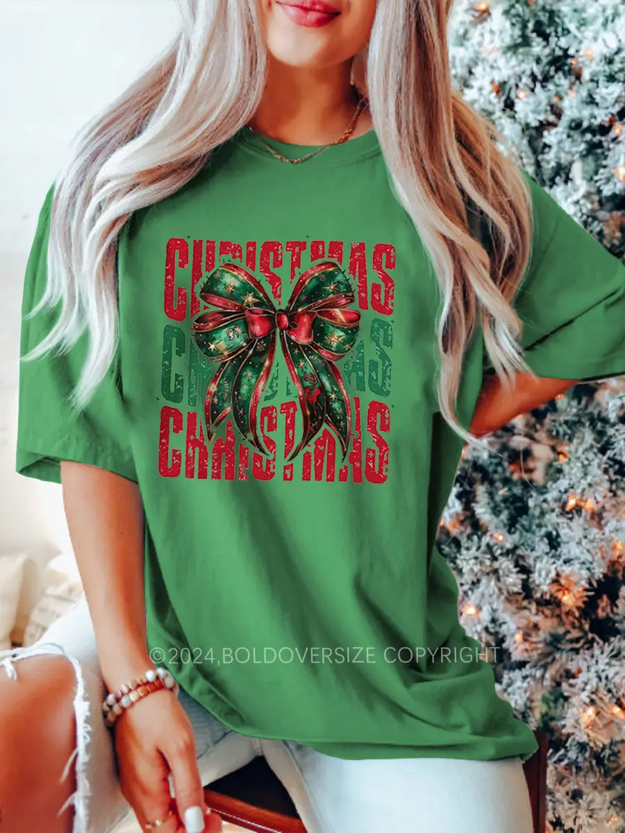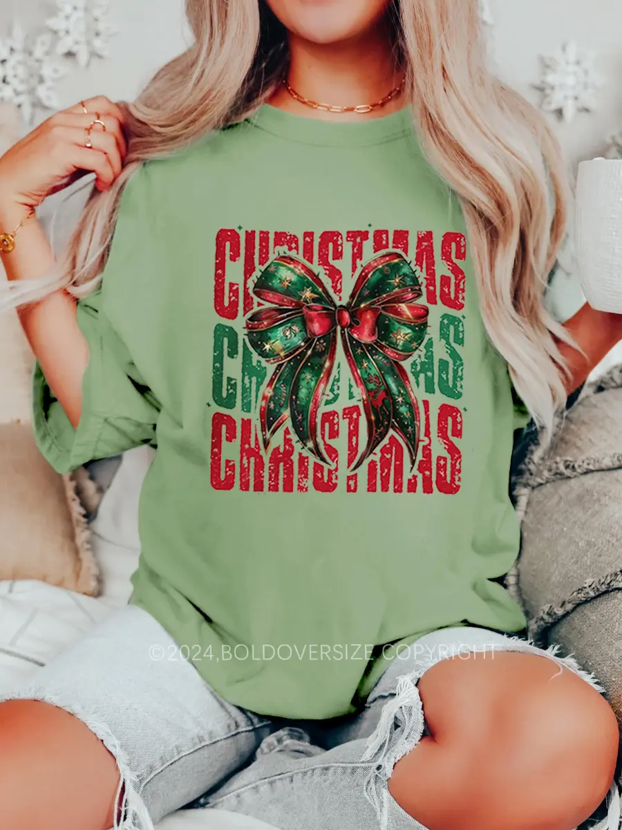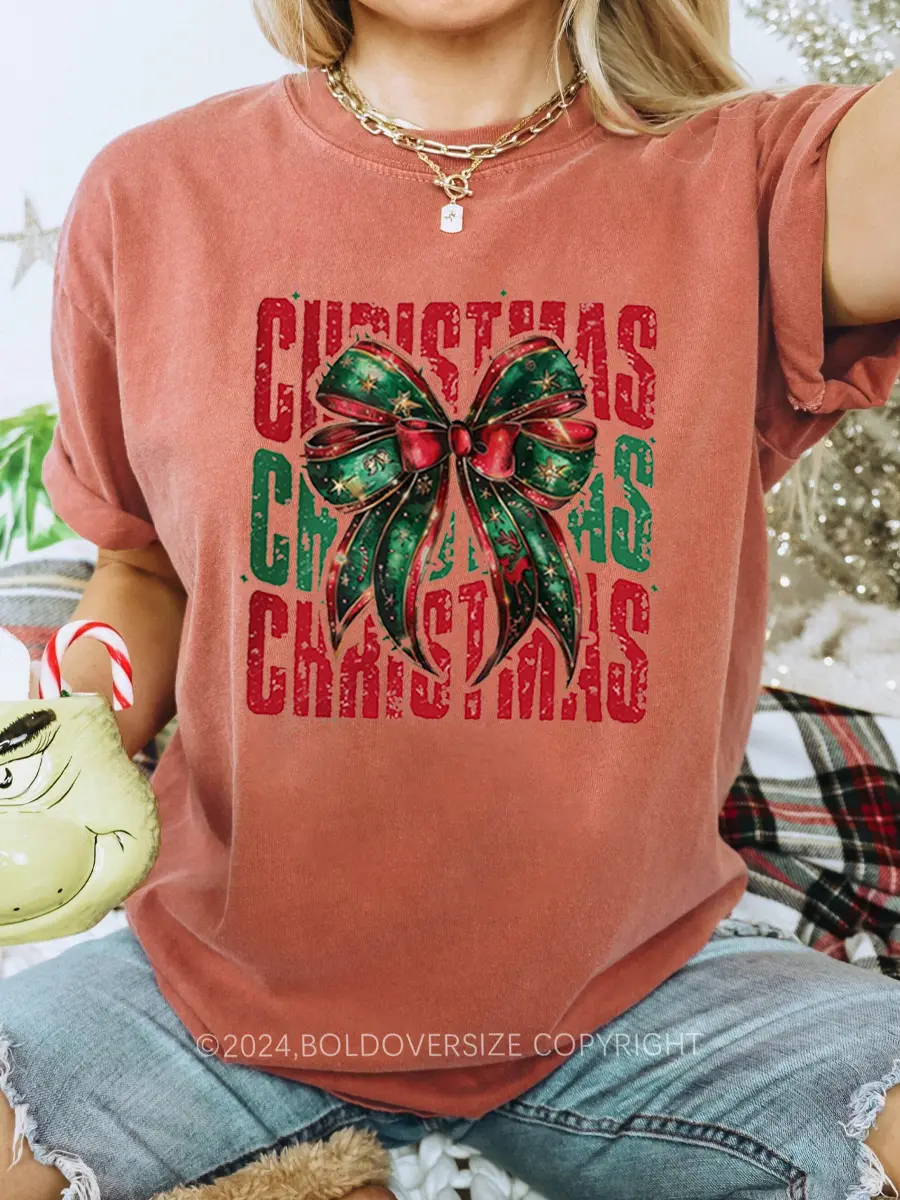 Vintage Christmas Coquette Bow T-Shirt