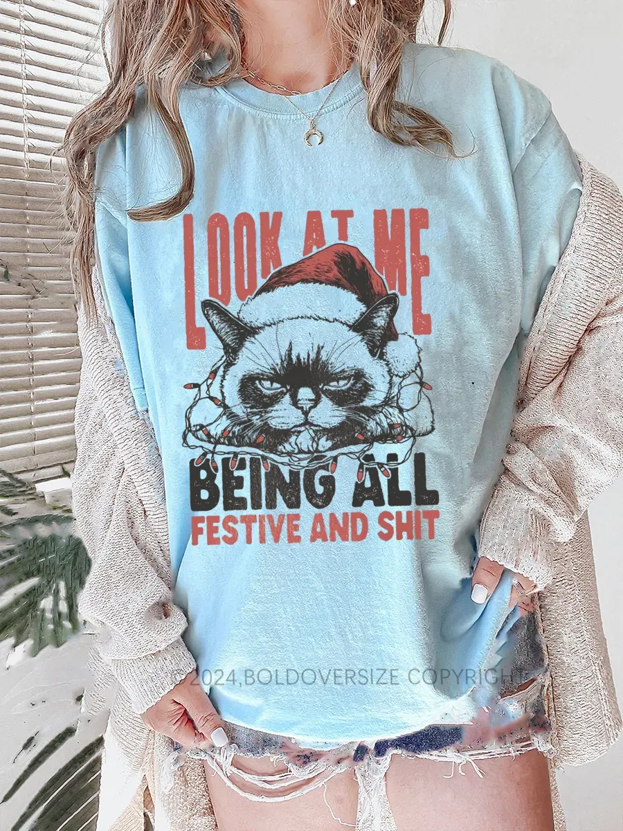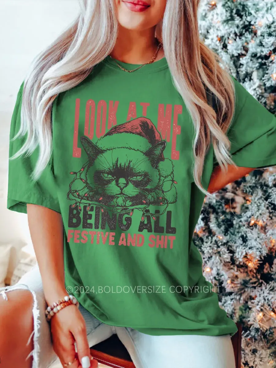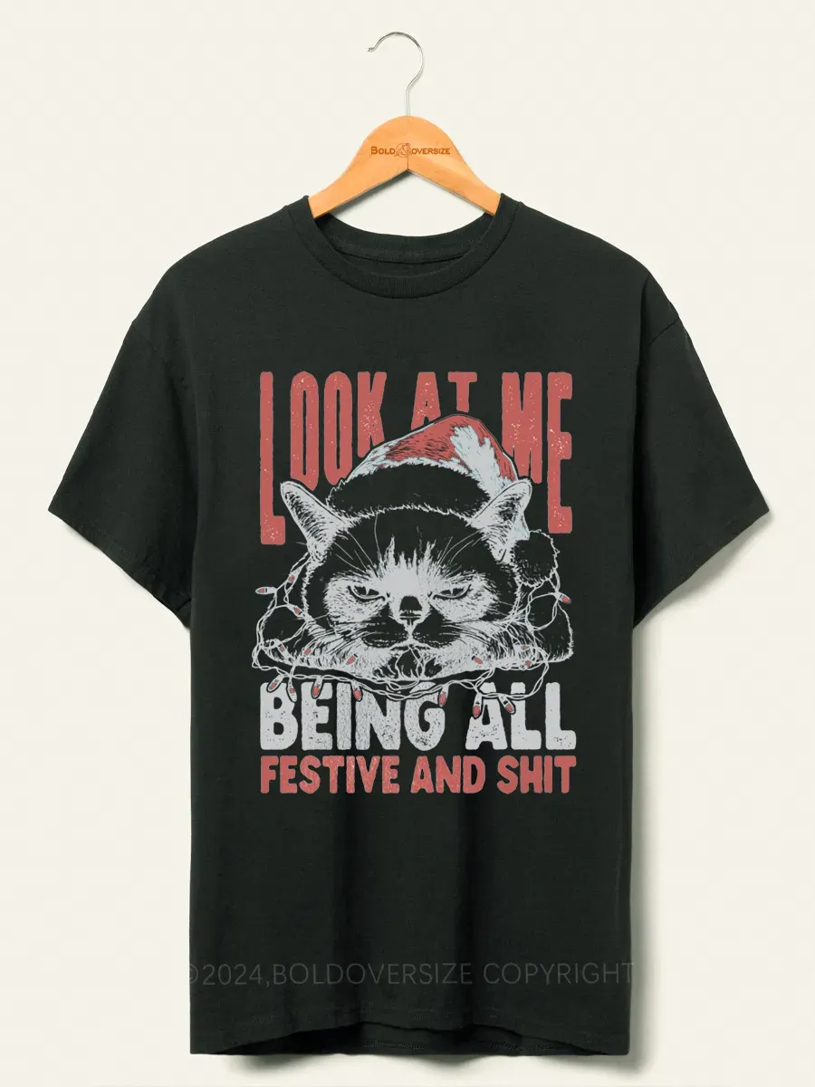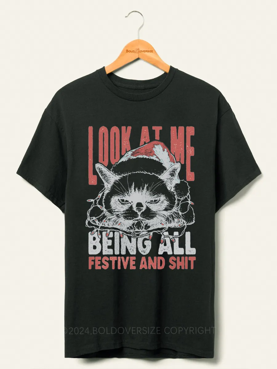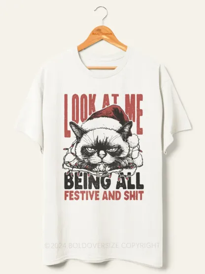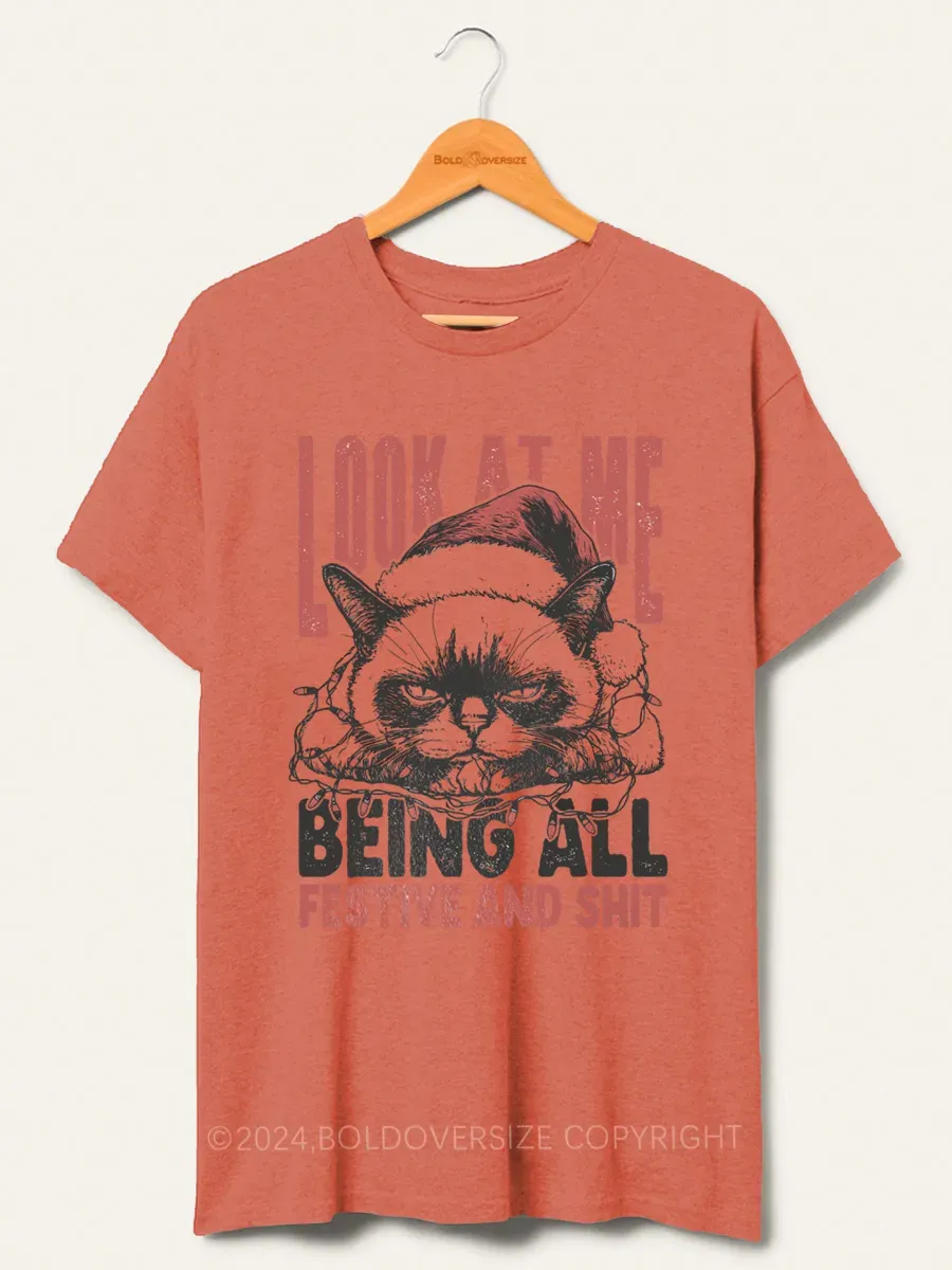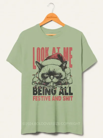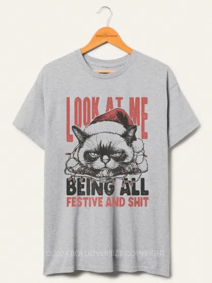 Vintage Funny Christmas Cat Humorous Quote Tee