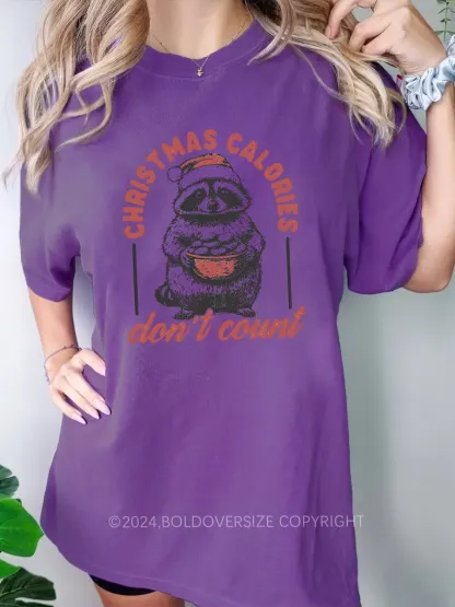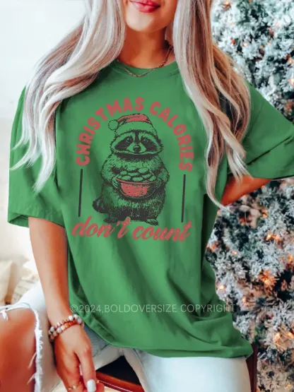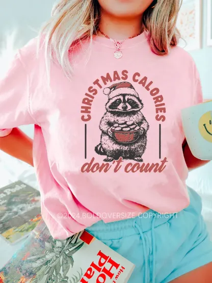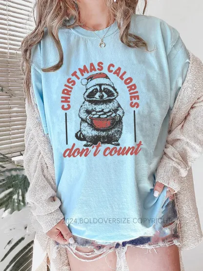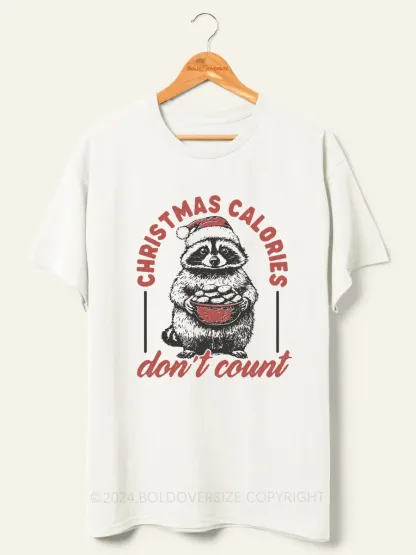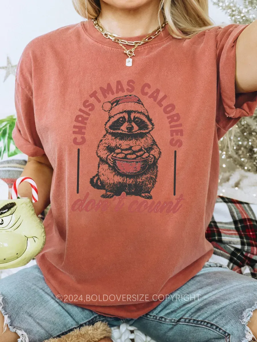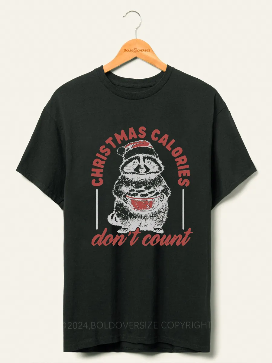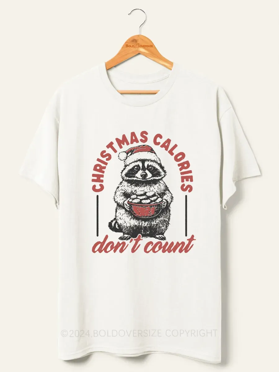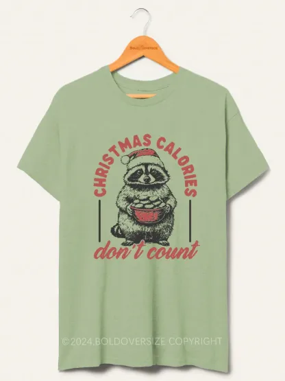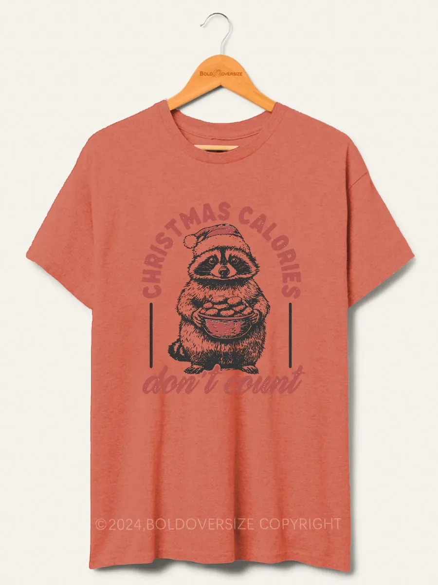 Vintage Funny Raccoon Christmas Calories Don'T Count Tee