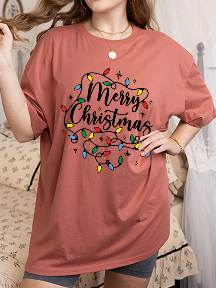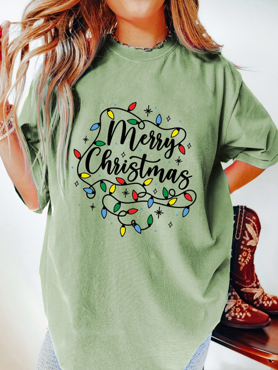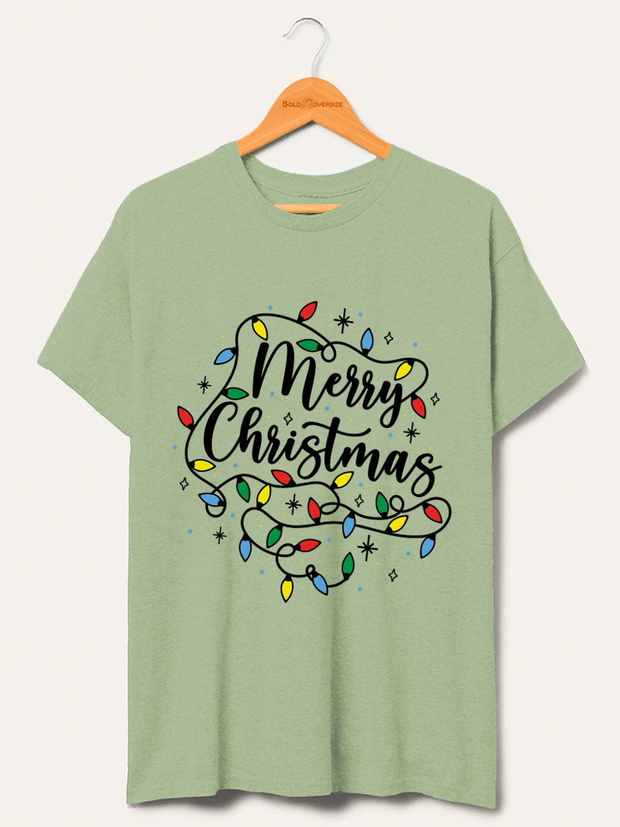Vintage Merry Christmas Light Oversize Graphic Tee