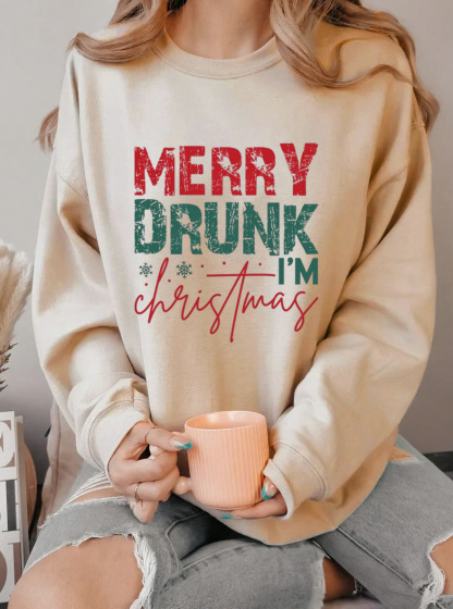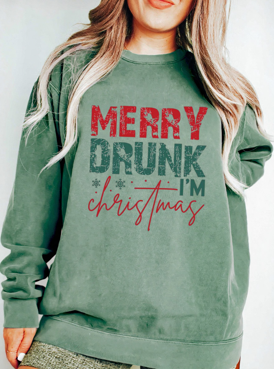 Vintage Merry Drunk I'M Christmas Oversize Graphic Sweatshirt
