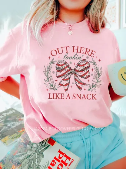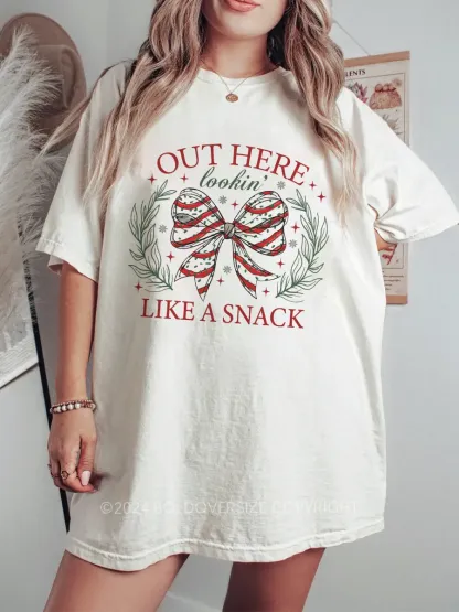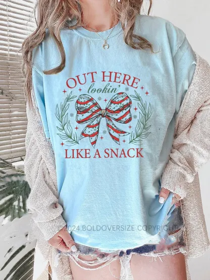 Vintage Out Here Lookin Like A Snack Christmas Bow Tee