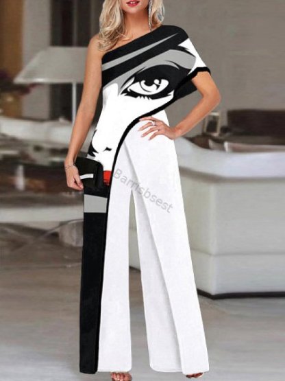 Vintage Single-sleeve Face Print Jumpsuit