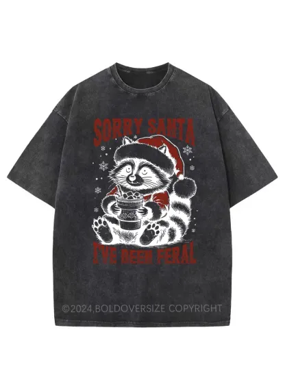 Vintage Sorry Santa I'Ve Been Feral Washed T-Shirt