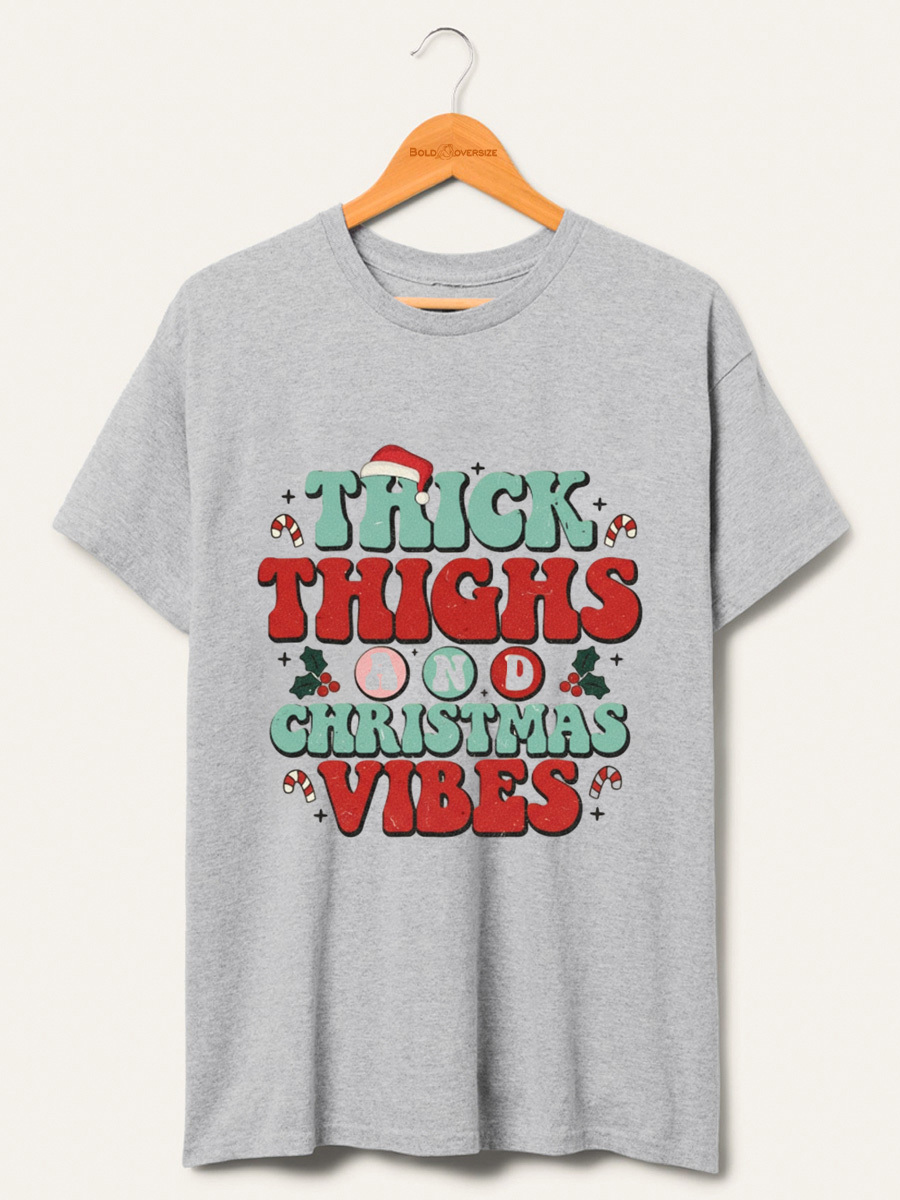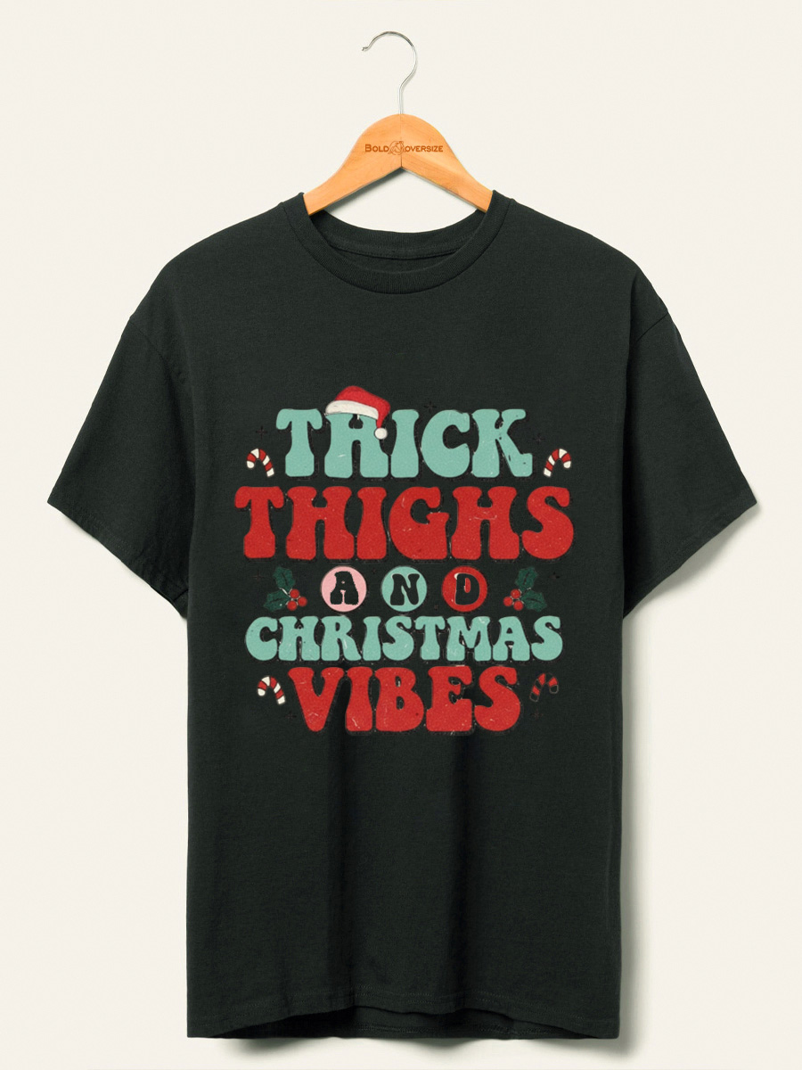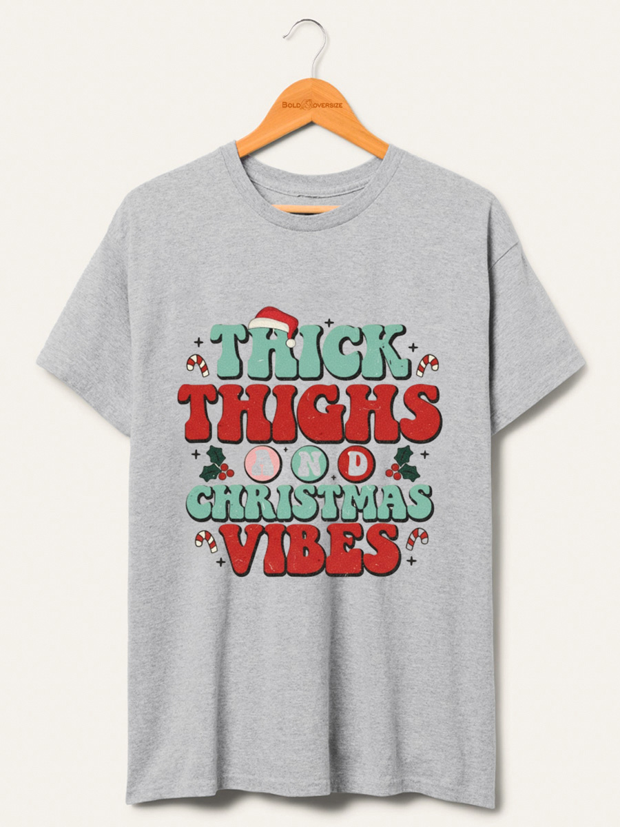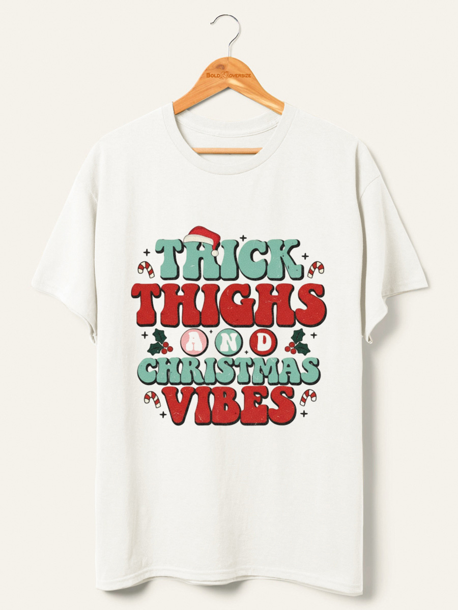 Vintage Thick Thighs Christmas Vibes Oversize Graphic Tee