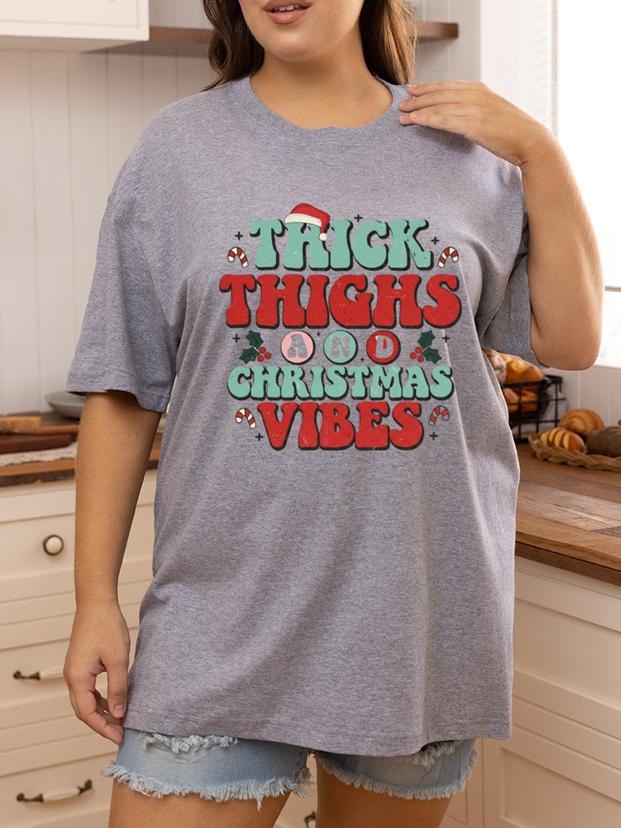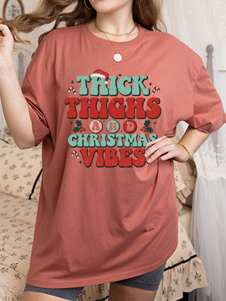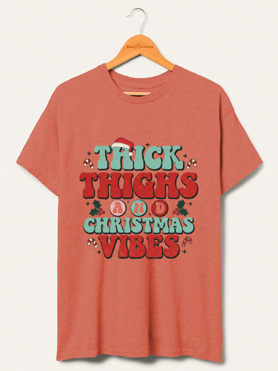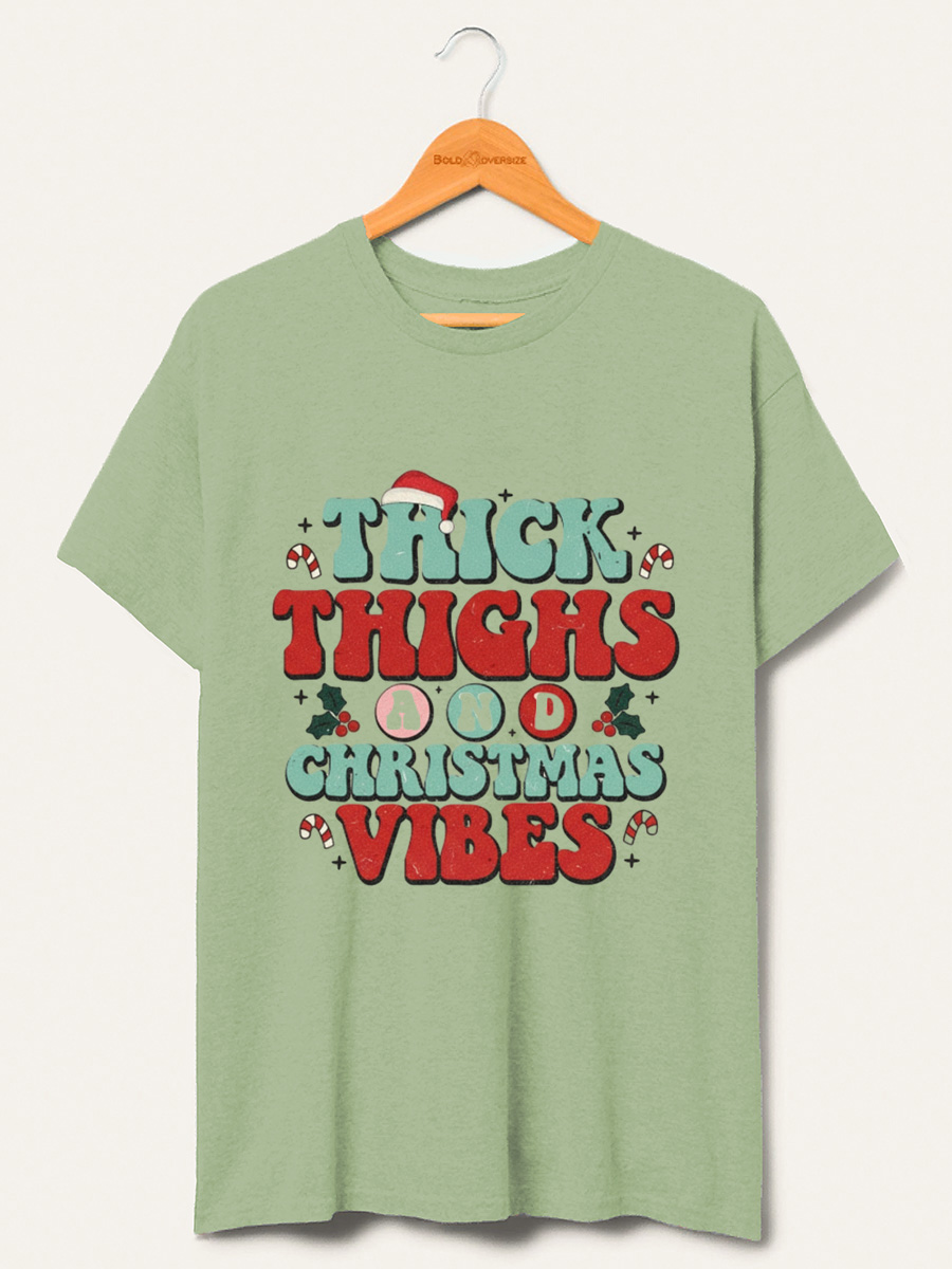 Vintage Thick Thighs Christmas Vibes Oversize Graphic Tee